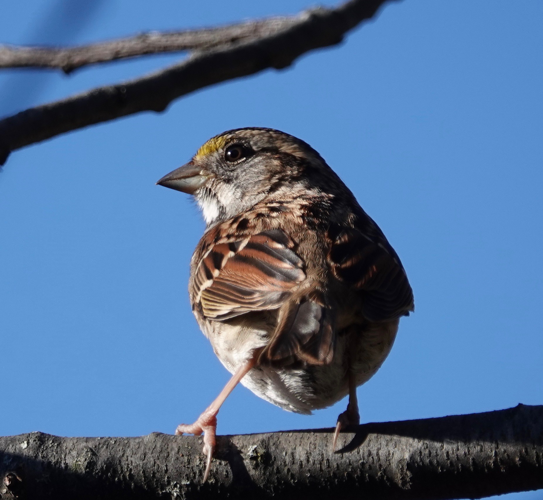 Another thing I find interesting about White-throated Sparrows is when they pair up to breed it is mostly one of each morph with gender in either direction. That is, either morph breeds with the opposite morph and gender, yet the result is some of both morphs and, I presume, genders. This doesn’t happen with most animals. When light morph humans reproduce with dark morph humans the result is generally a blended beige morph human with diverse characteristics from both parents.