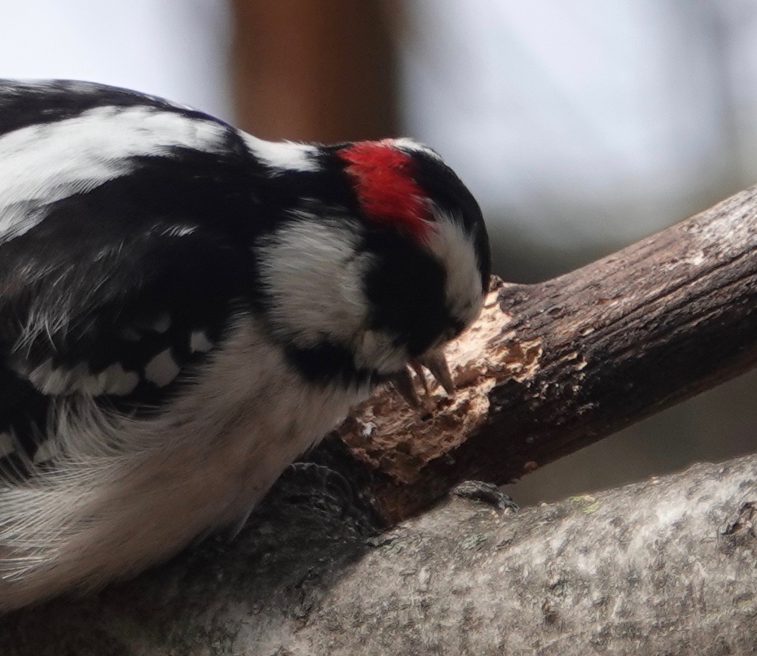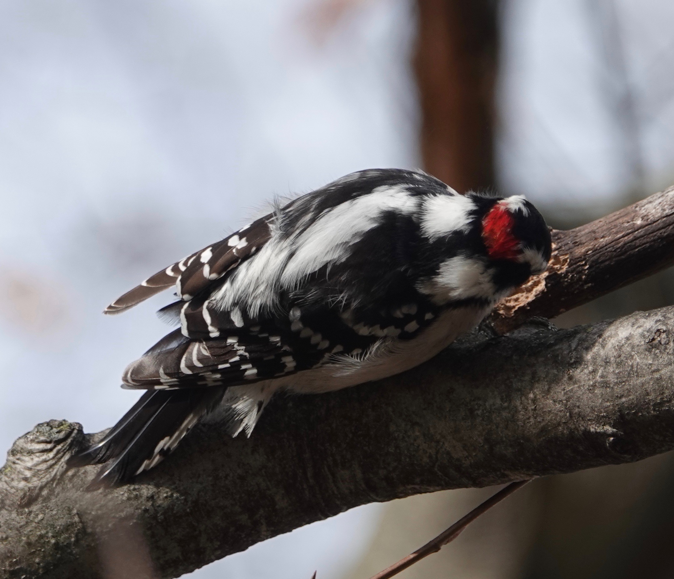 When jug feeders were used in Central Park a tube called a Noel guard and made from 1/2″ hog wire was mounted over the entrances to restrict the ize of the birds which could enter and get food. This proved no deterrence to a Red-bellied Woodpecker. He hung from the bottom of the tube so his bill was just inside the tube and reached in with his very long tongue to get some seed. I saw this several times and think it was always the same bird, but can’t attest to that now, some 8-10 years later, but it was memorable.