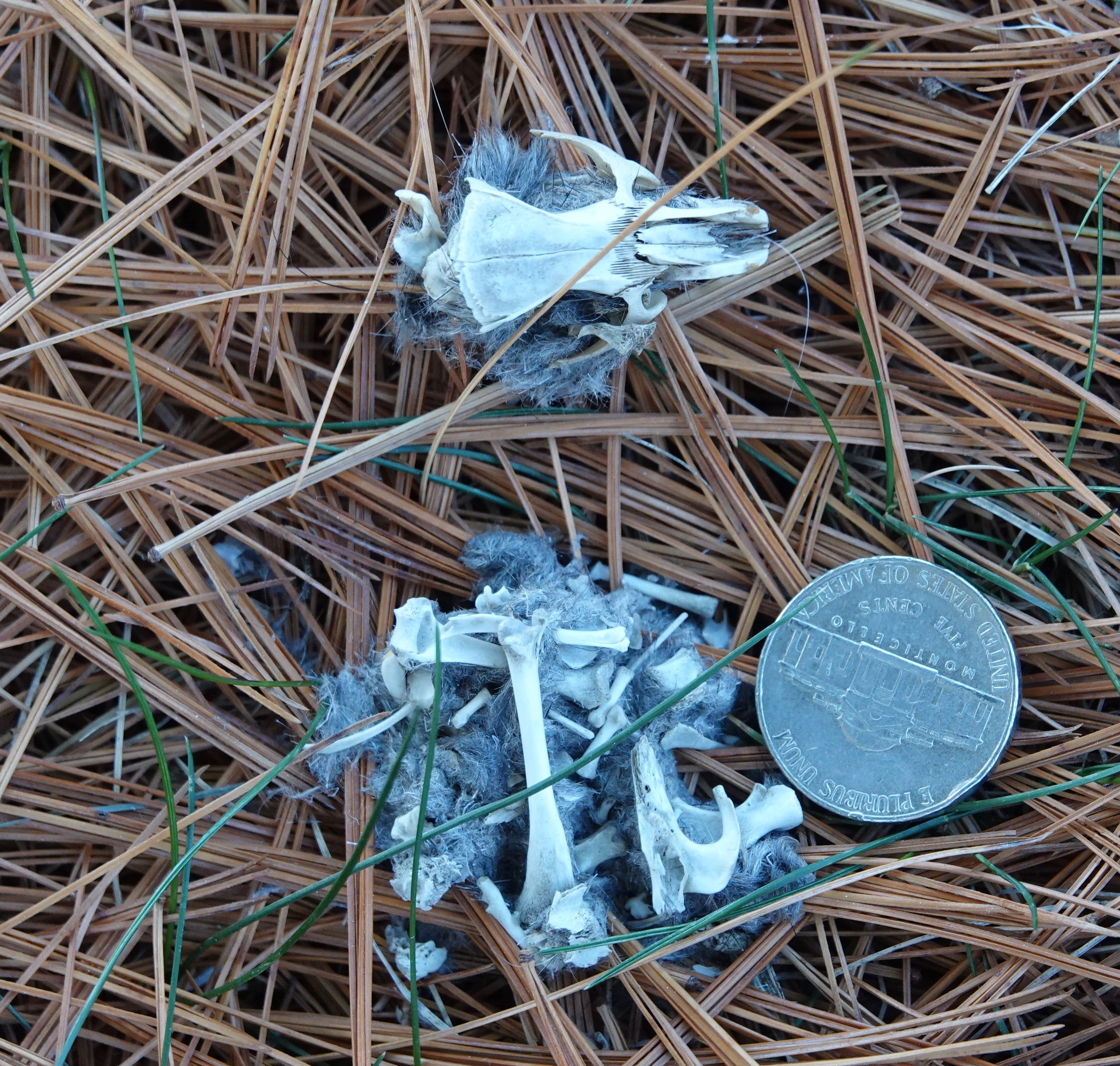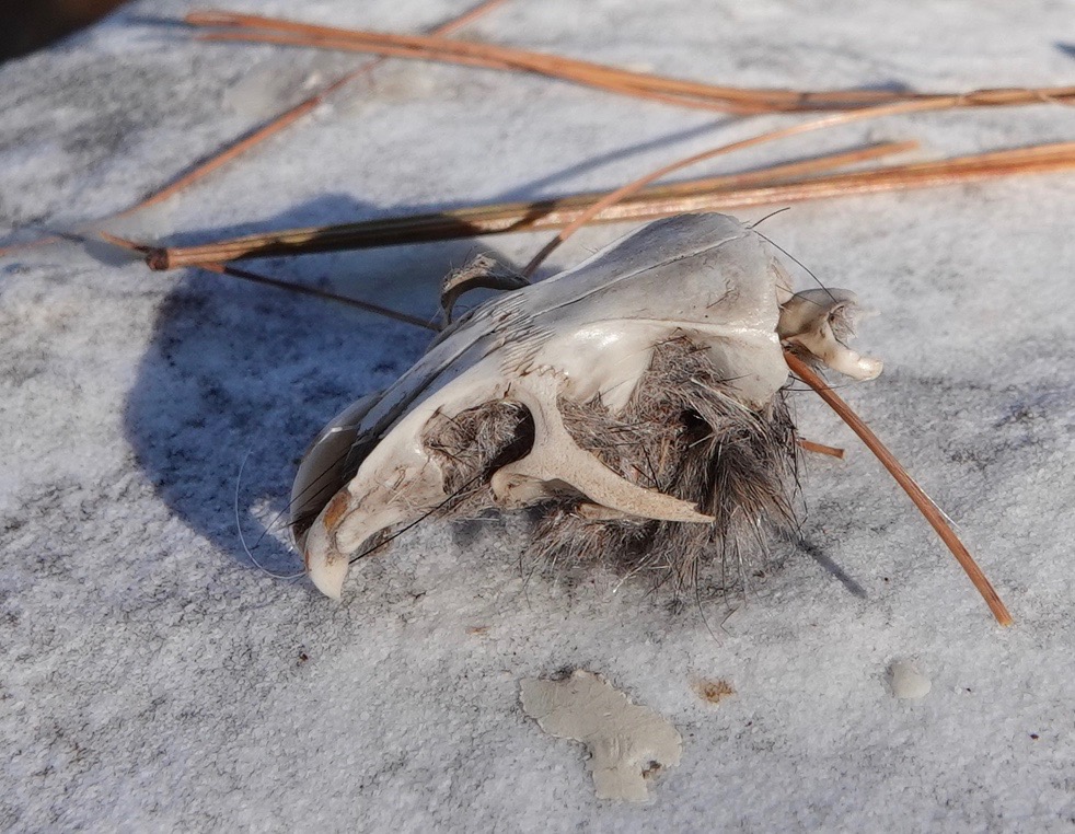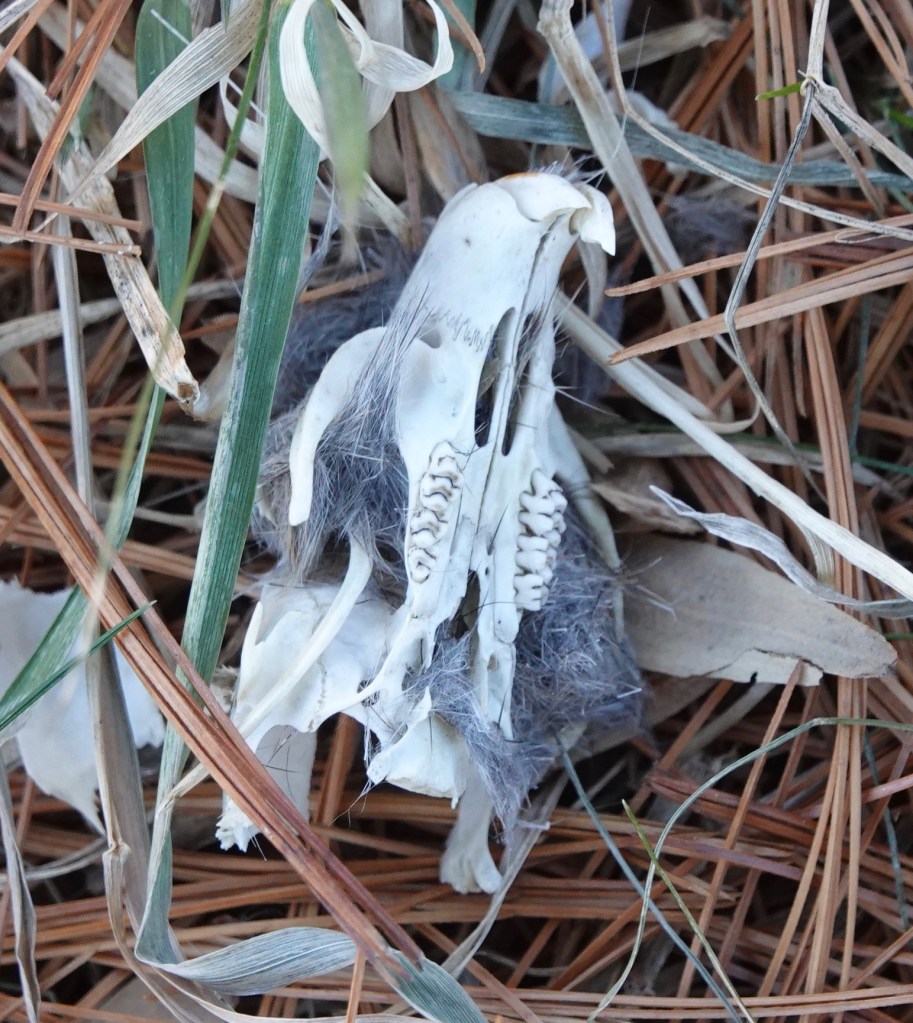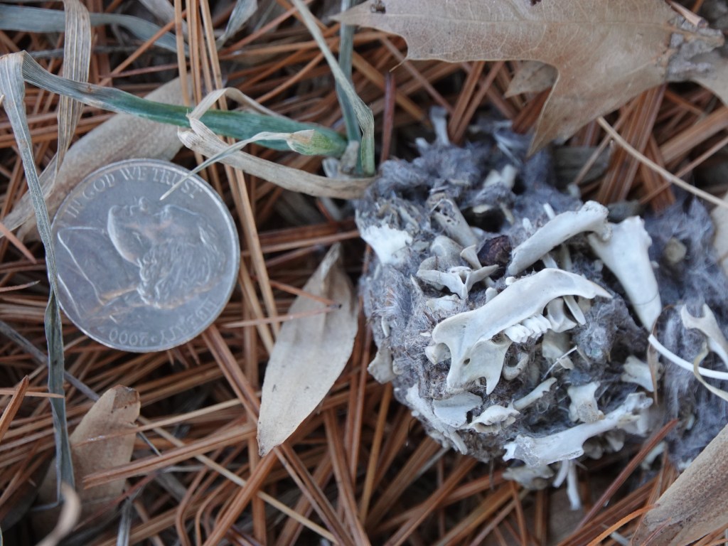 Deep into January, I searched for owl pellets.And then one day, I found several under a pine. All these regurgitated bits of rodent. Here are some lower jaw pieces. The incredible teeth…
