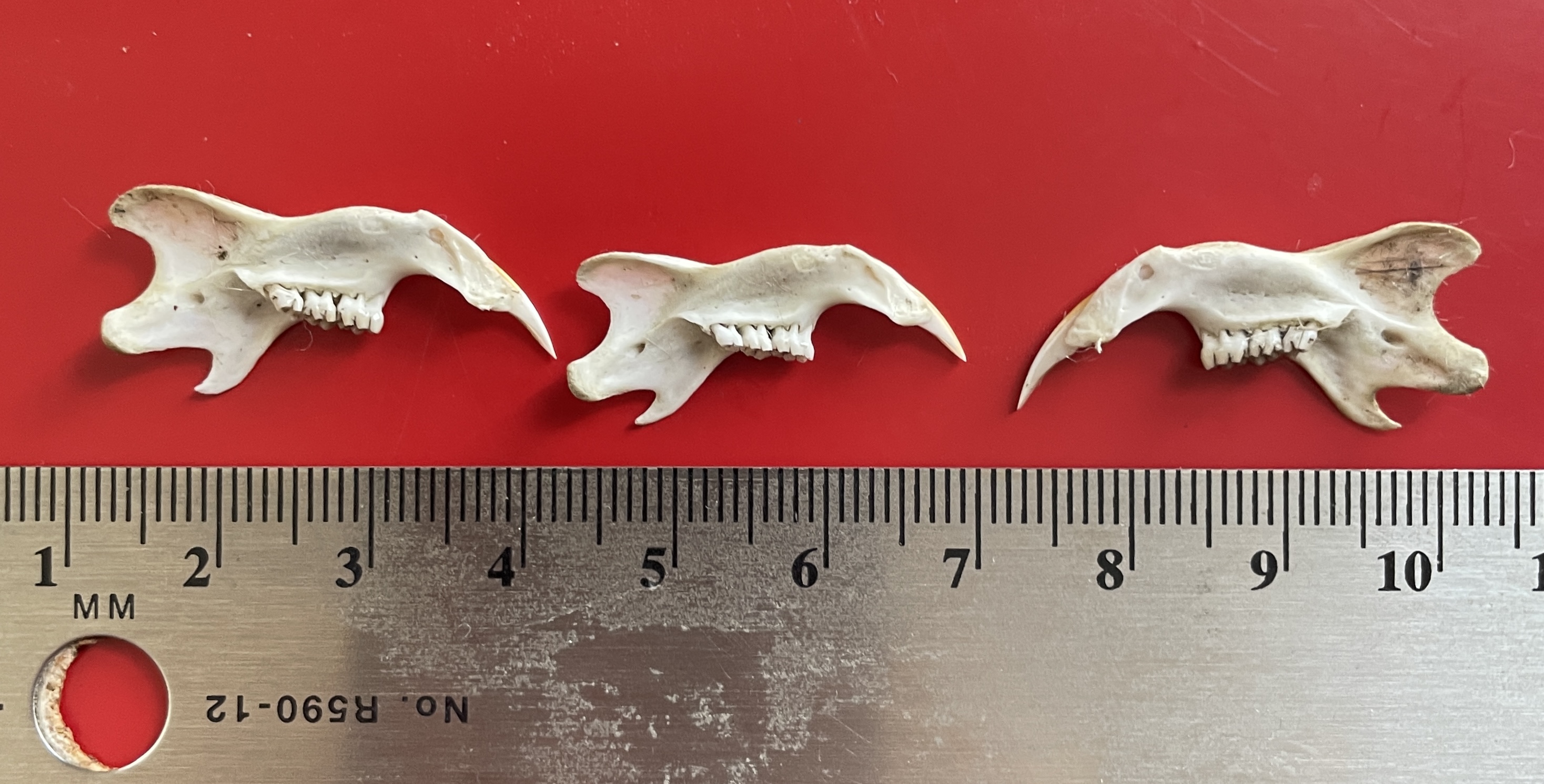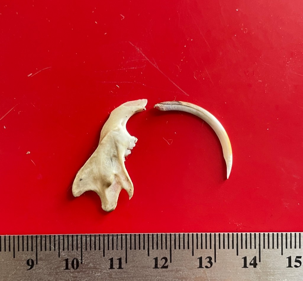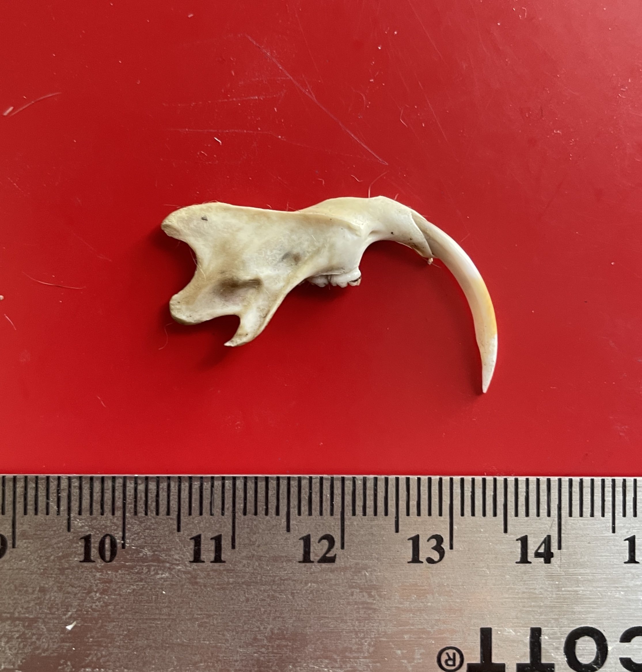 Deep into January, I searched for owl pellets.And then one day, I found several under a pine. All these regurgitated bits of rodent. Here are some lower jaw pieces. The incredible teeth…