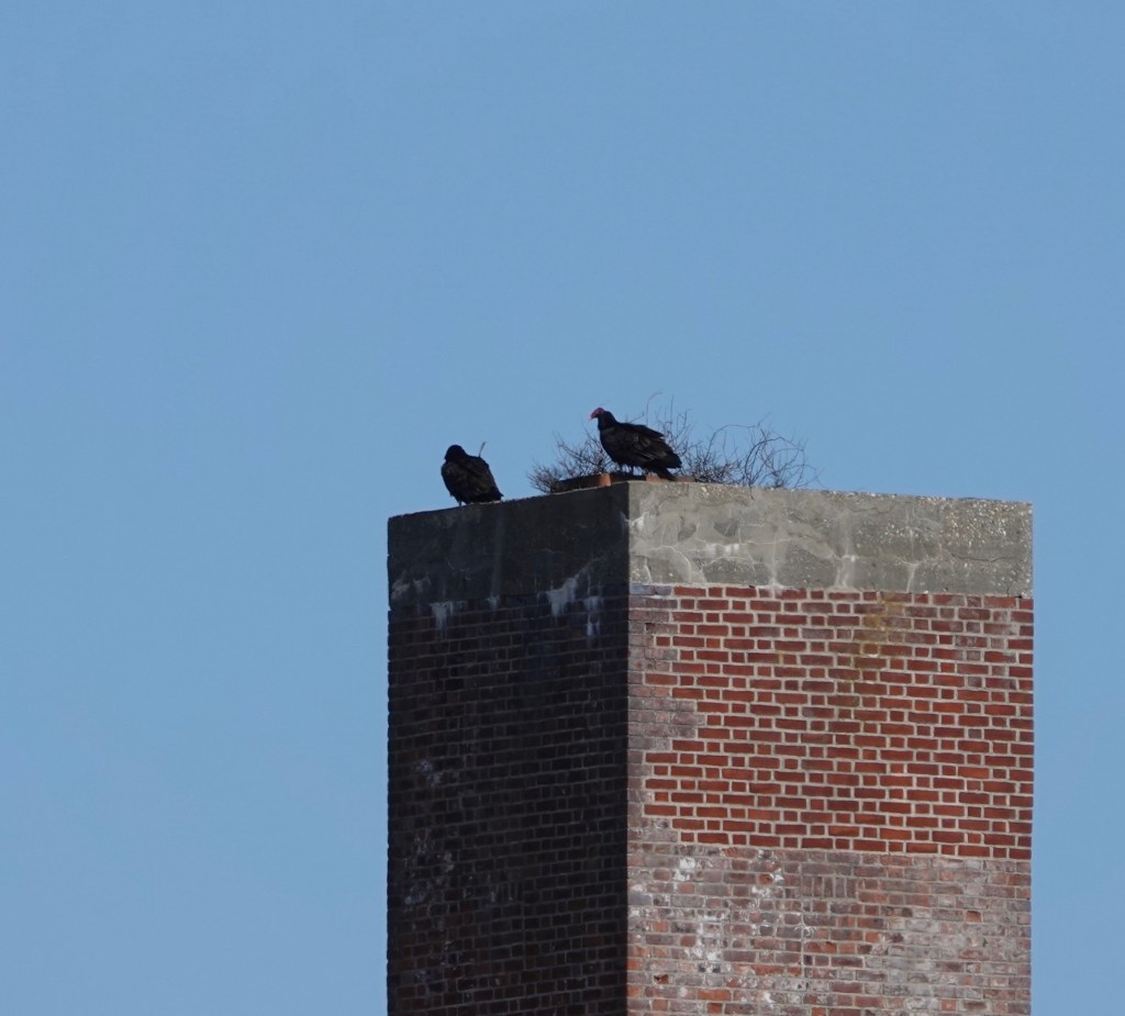 Turkey Vultures over Jacob Riis. (Beach and sculpture.)