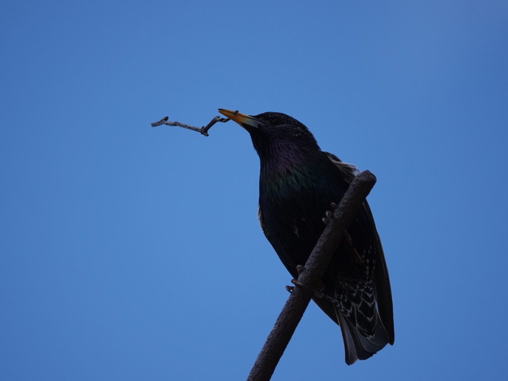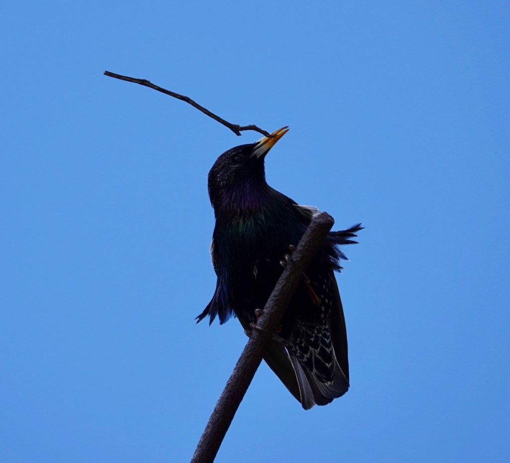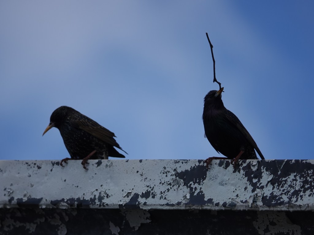 I can imagine the bird with the stick poking it in the hole while the mate is inside to grab it. Or, discarding the log because it’s just too big. The mate thinks “The dumb cluck just has no sense of size or spatial awareness”.