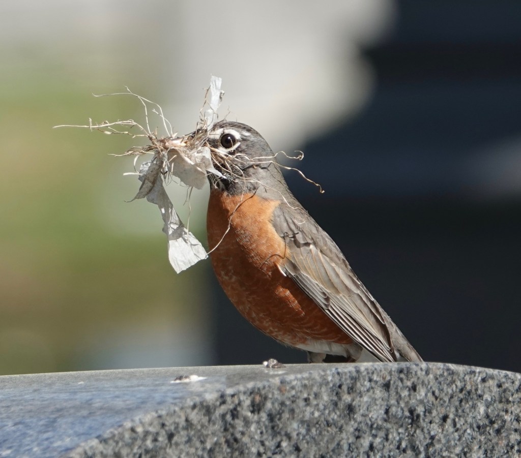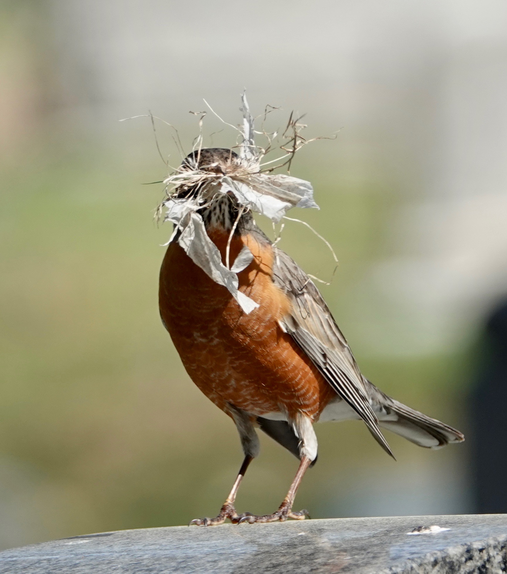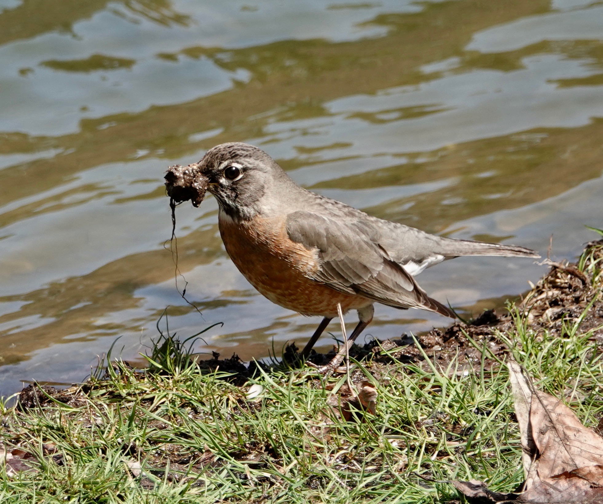I wonder if the nest parasites make their way to the nest during this phase of nest building. Most birds don’t wallow in the grass or take mud baths, but the parasites still find them. Perhaps the egg laden adults drop off the bird to lay eggs in the grass or the mud?