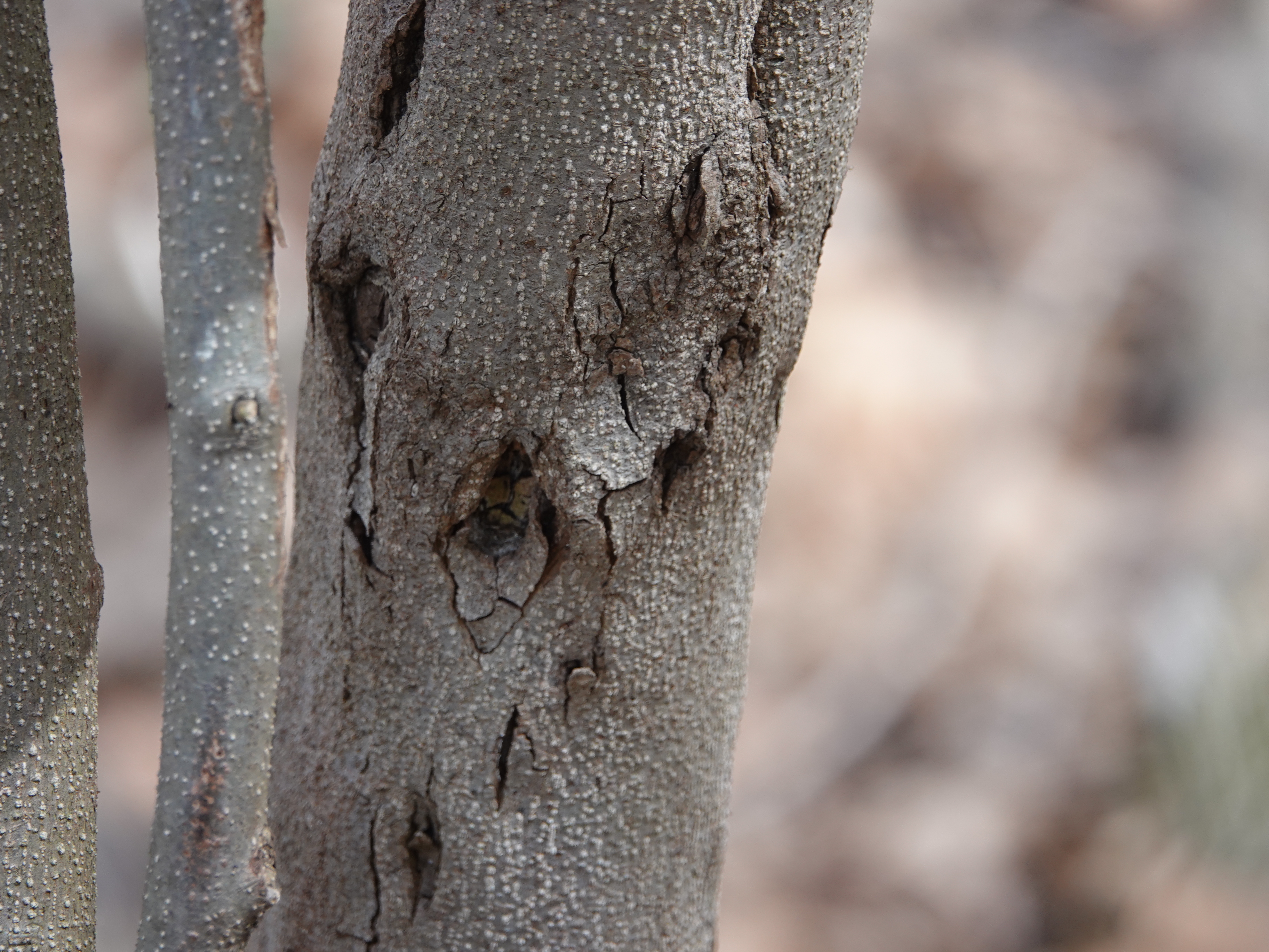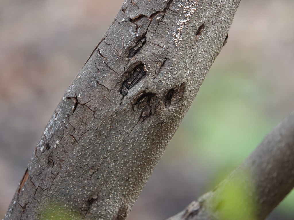 The Northern Spicebush (Lindera benzoin) was blooming in The Bronx this past weekend. A lovely understory plant, this. Perhaps a gall created by the midge Neolasioptera linderae. But what fresh hell is this? This pockmarky damage to the trunks is now seen all over the many Spicebushes in this part of the the northwest section of Van Cortlandt Park. Slits in the bark seem to be an early manifestation.They widen and deepen.