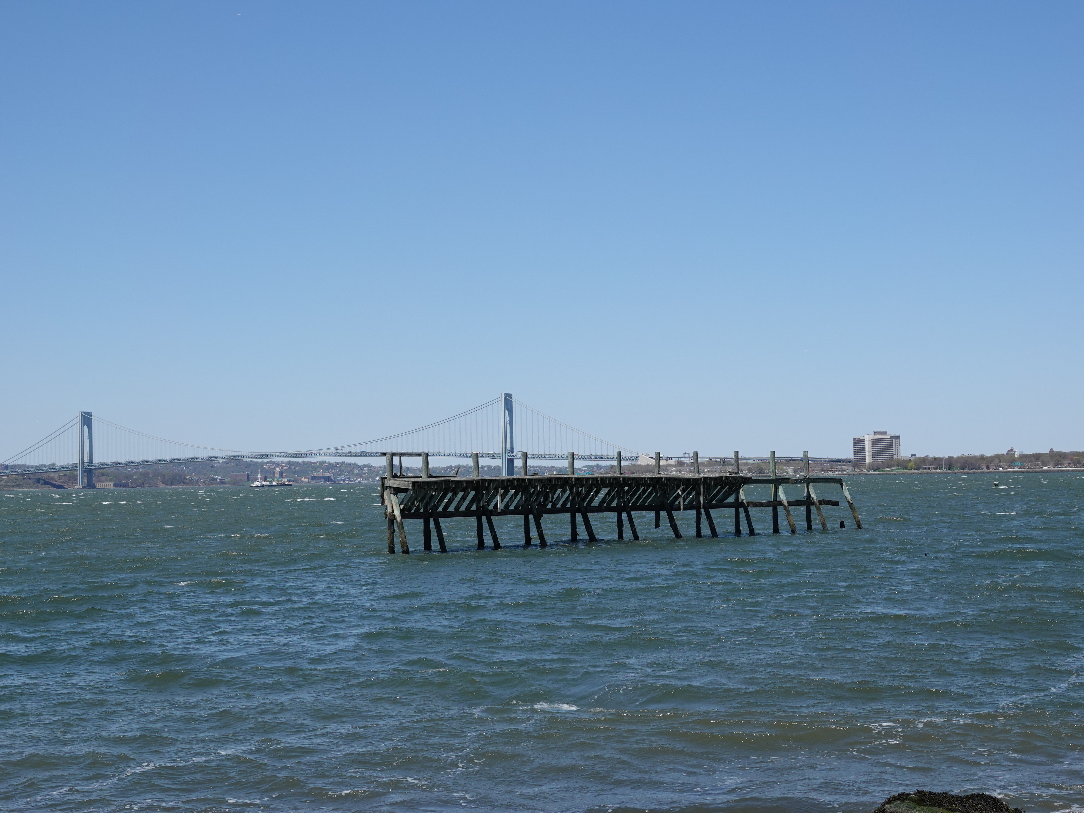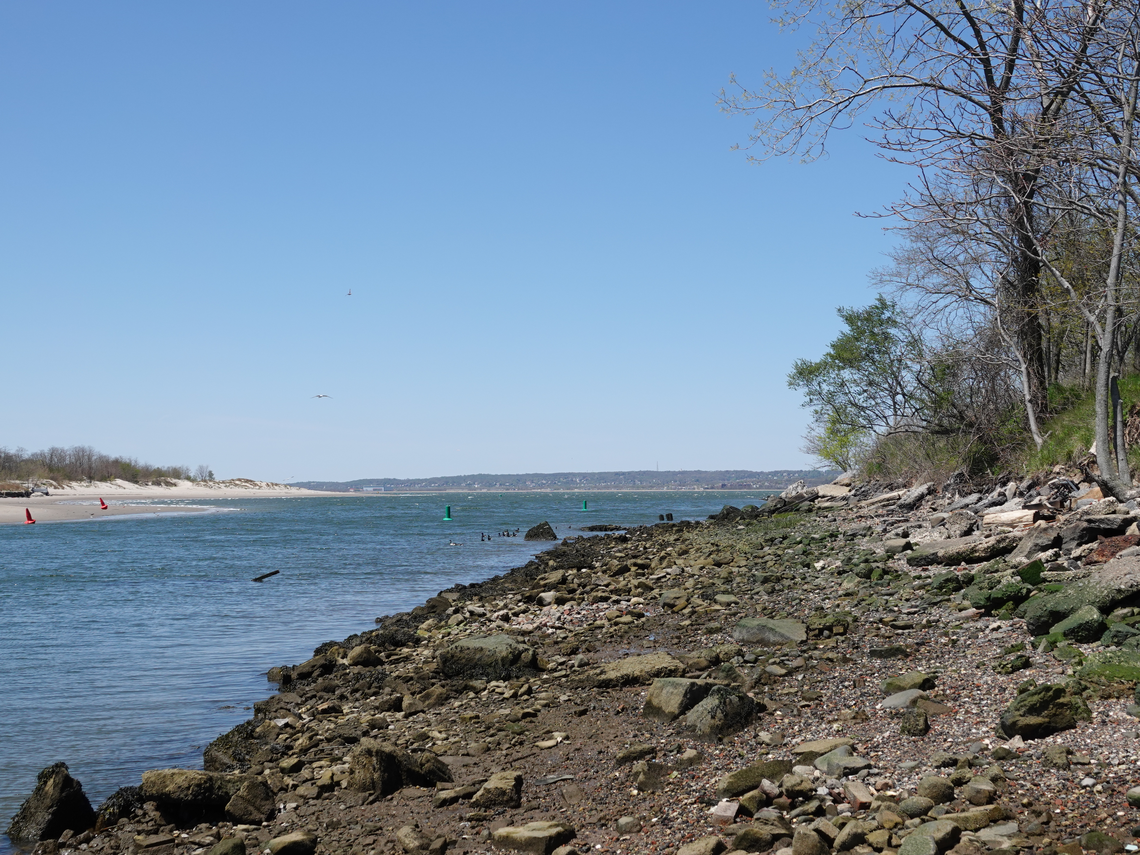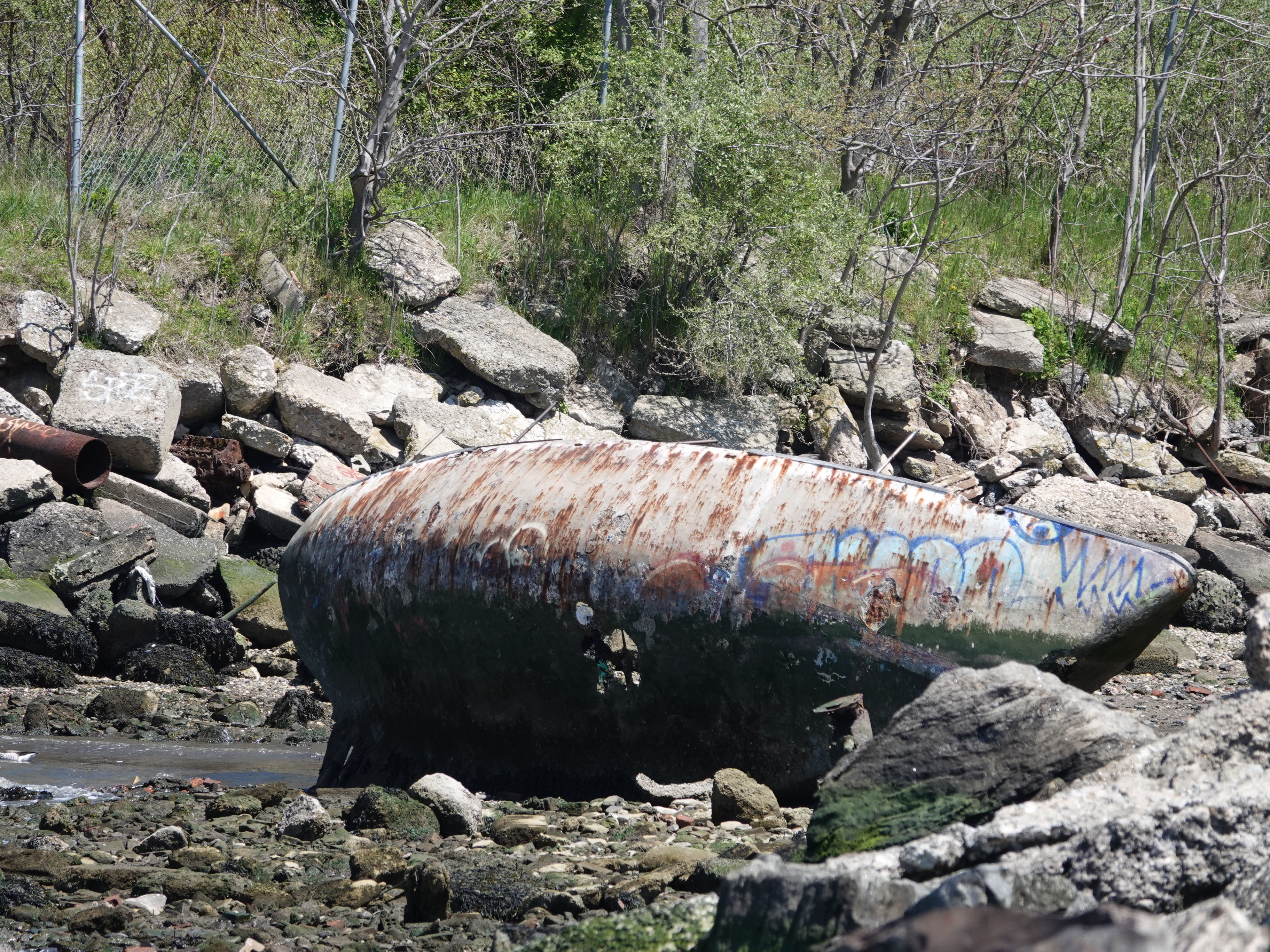 There are no deer in Bensonhurst or Coney Island, but this one ended up dead on the rocky shore of Calvert Vaux Park. Yet there is a submarine–go figure.Coney Island CreekGravesend Bay, with the Verrazano Bridge in the background the remains of an old pier in the foreground. There used to be a ferry here.Things float ashore, from old boats to Water Chestnut seed pods (Trapa natans) from up the Hudson.Heron, presumably.Domestic pig. Hmmm.An exotic clam in the seafood trade, Meretrix lyrata. Somebody either brought these here to eat or to feed to the gulls. Half a dozen people were actually clamming along the grizzly shore here, presumably going after soft and hardshell clams.