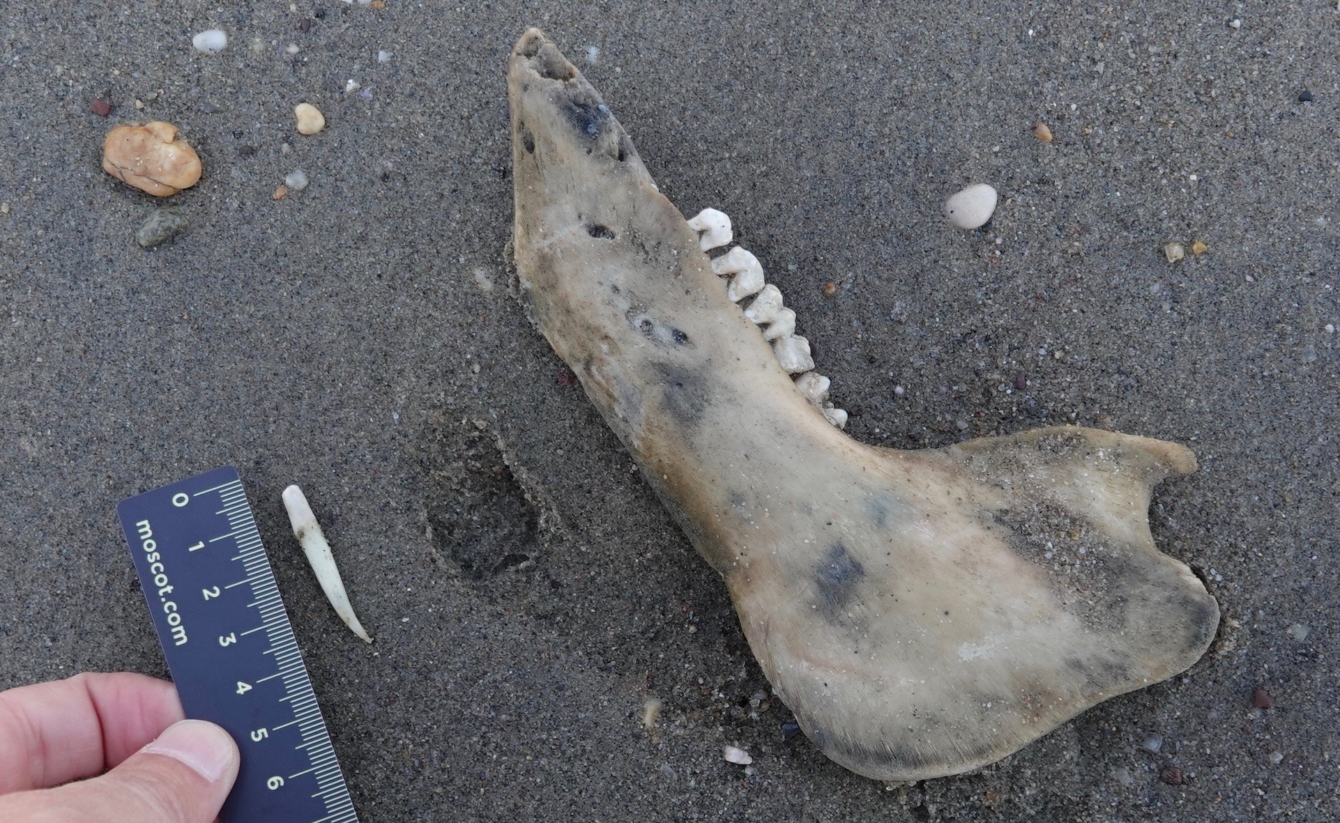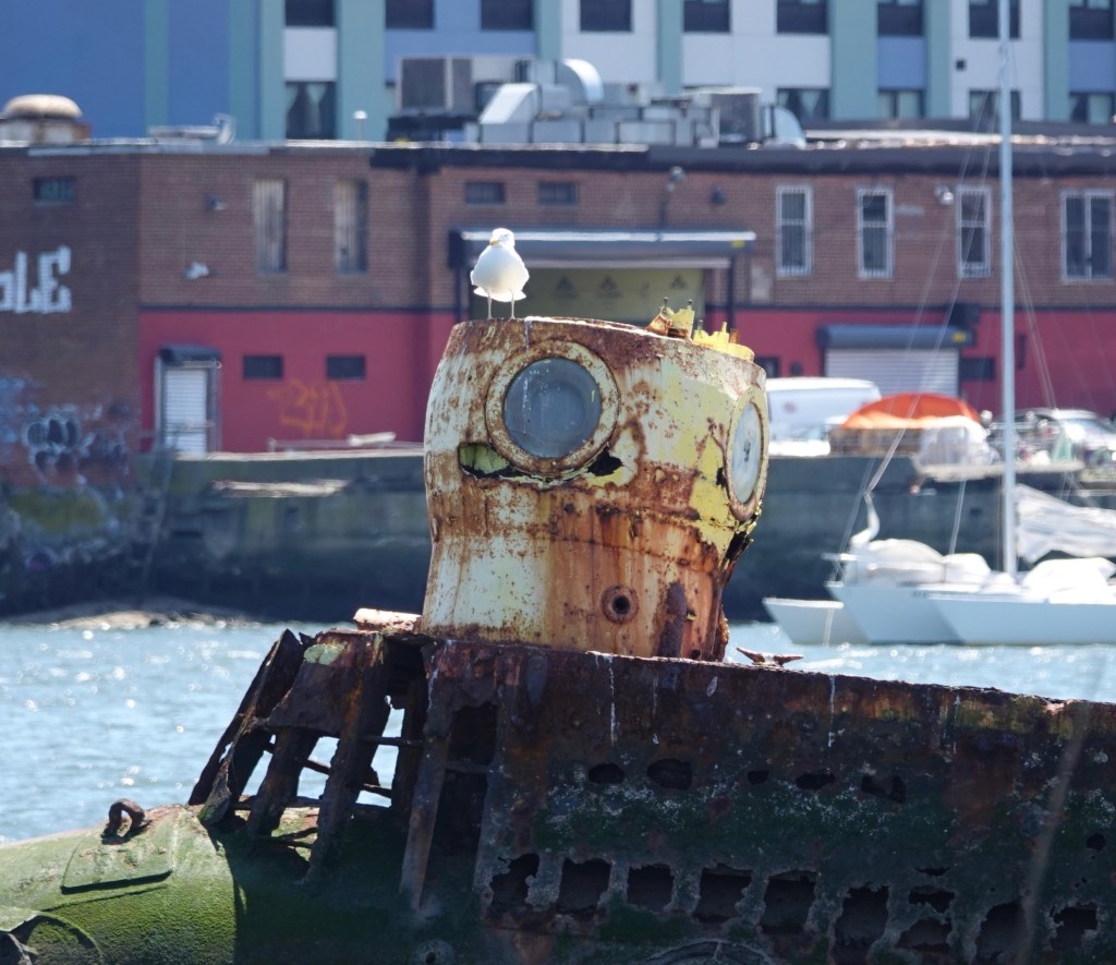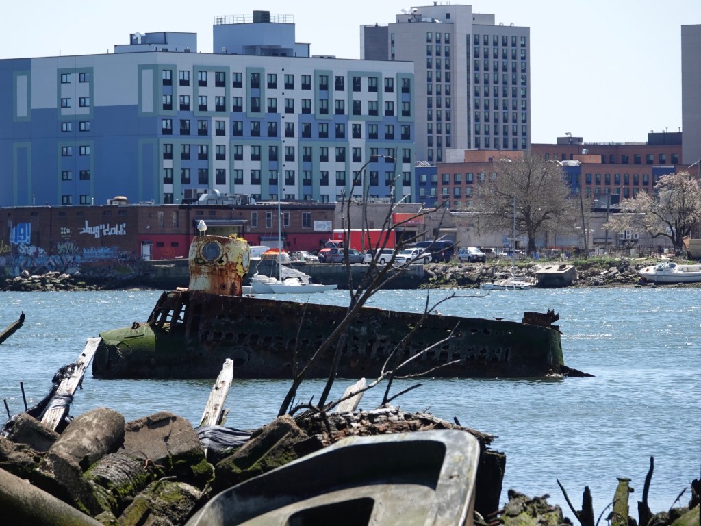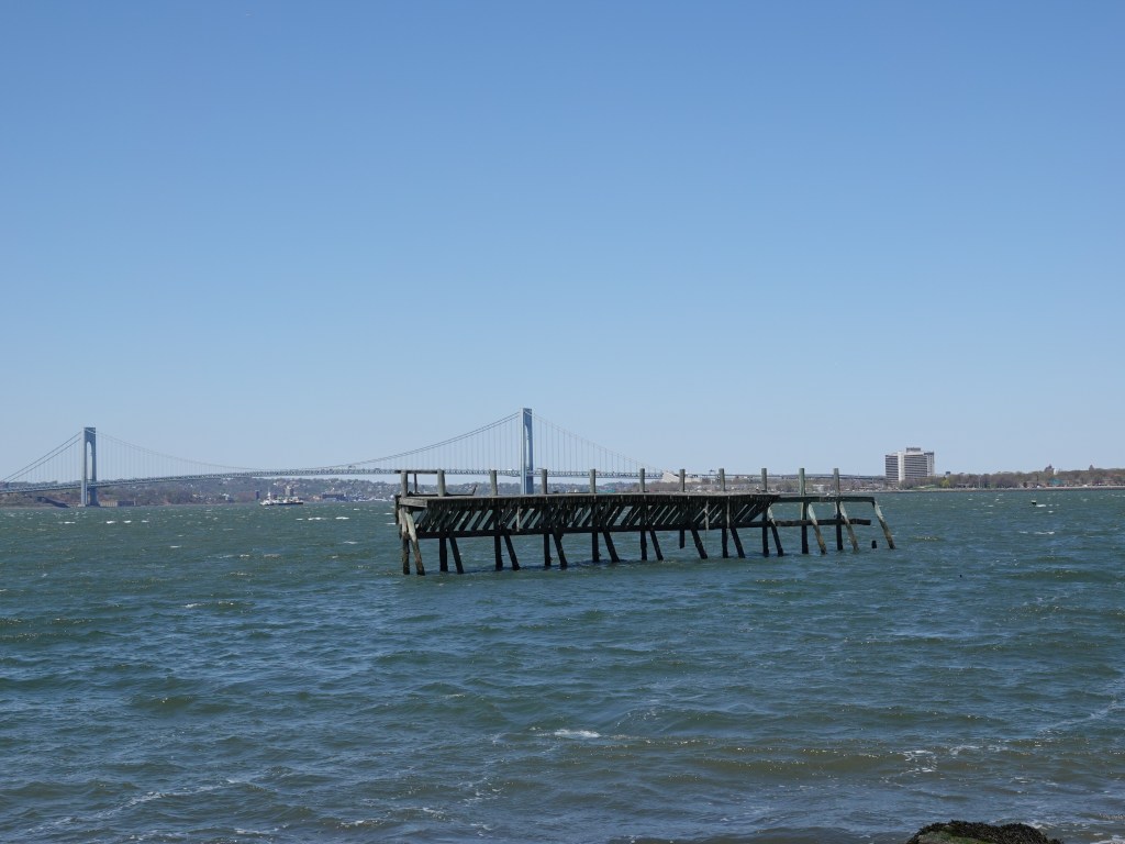 There are no deer in Bensonhurst or Coney Island, but this one ended up dead on the rocky shore of Calvert Vaux Park. Yet there is a submarine–go figure.Coney Island CreekGravesend Bay, with the Verrazano Bridge in the background the remains of an old pier in the foreground. There used to be a ferry here.Things float ashore, from old boats to Water Chestnut seed pods (Trapa natans) from up the Hudson.Heron, presumably.Domestic pig. Hmmm.An exotic clam in the seafood trade, Meretrix lyrata. Somebody either brought these here to eat or to feed to the gulls. Half a dozen people were actually clamming along the grizzly shore here, presumably going after soft and hardshell clams.
