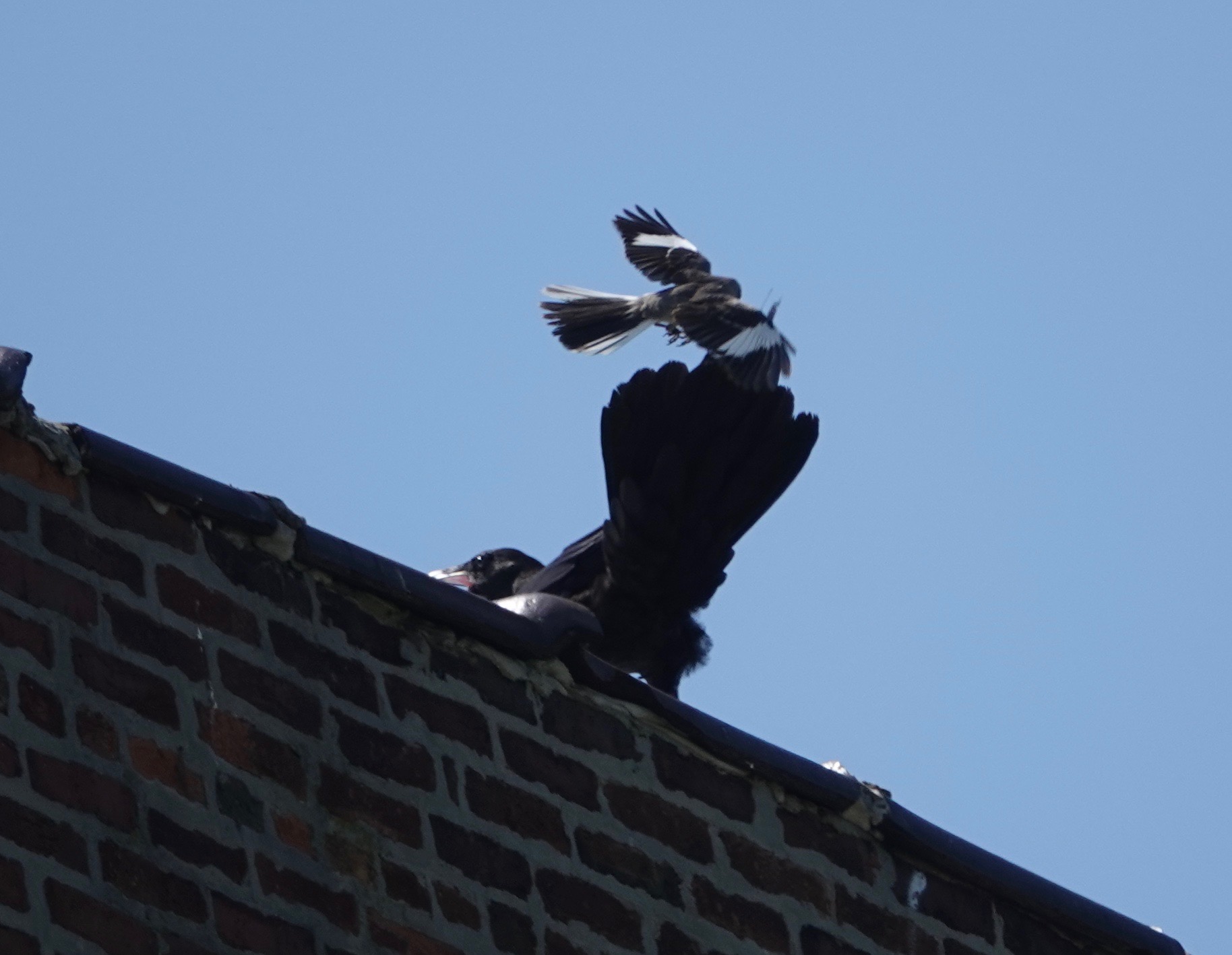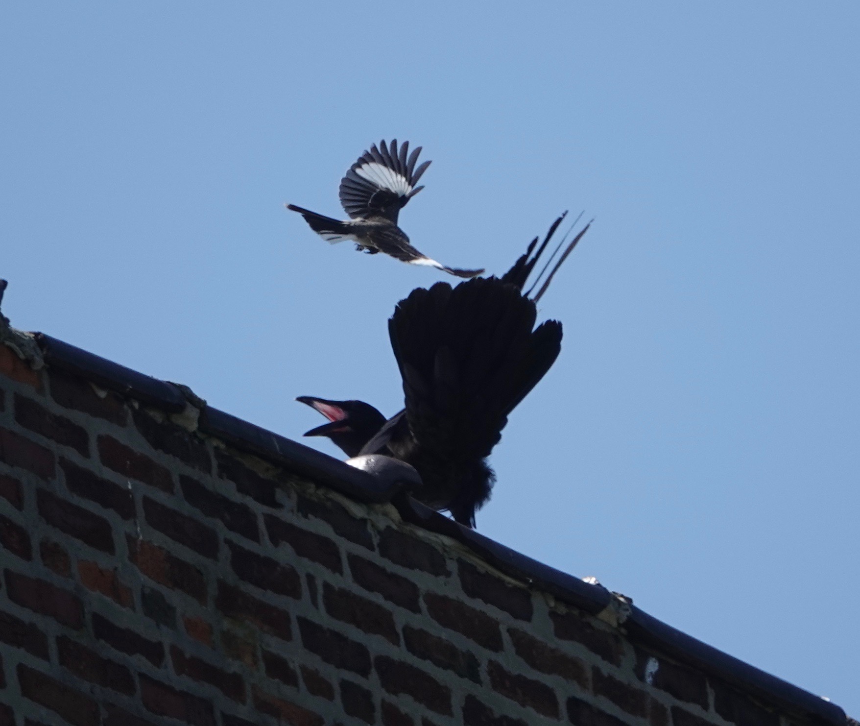 Even without the raven a mockingbird will put on a great show. I watched one sing it’s heart out for several minutes atop a building then fly up about ten feet doing flips and turns that would make an Olympic gymnast or diver envious. Then it landed on the same perch and began singing again. It was quite a show and it repeated several times. Definitely an eye-catcher. Those white patches in the wings and tail flashed brilliantly in bright sun and had to be visible for miles.