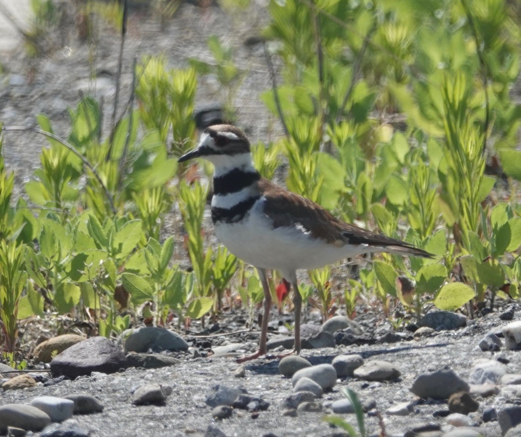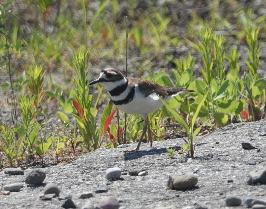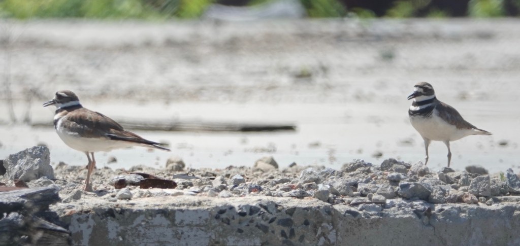 Recently, when I ran into the whole Common Raven family around the dumpsters, a Killdeer took to the air with a lot of noise. There have been Killdeers in this fenced-off area next to Bush Terminal Park for years. There were two here on the 24th. And where there are two….? I looked hard for youngsters but didn’t see any. What a place to raise kids! Construction vehicles rumble by and there’s a large feral cat colony maintained by “animal lovers” nearby.