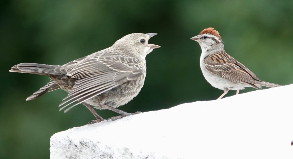 Presumaby, in the nest the size advantage the cowbird has over the Chipping Sparrow nestlings guarantees a relatively easy victory when the cowbird chick reaches a size to need all the room and all the food. Female cowbirds raised by Chipping Sparrows might deposit eggs in Chippie nests preferentually, so the scales are tipped.