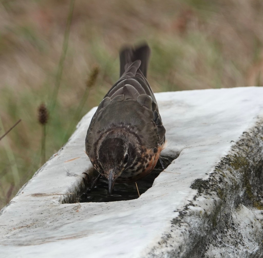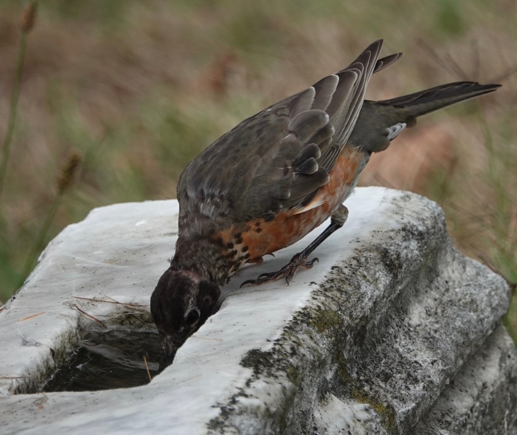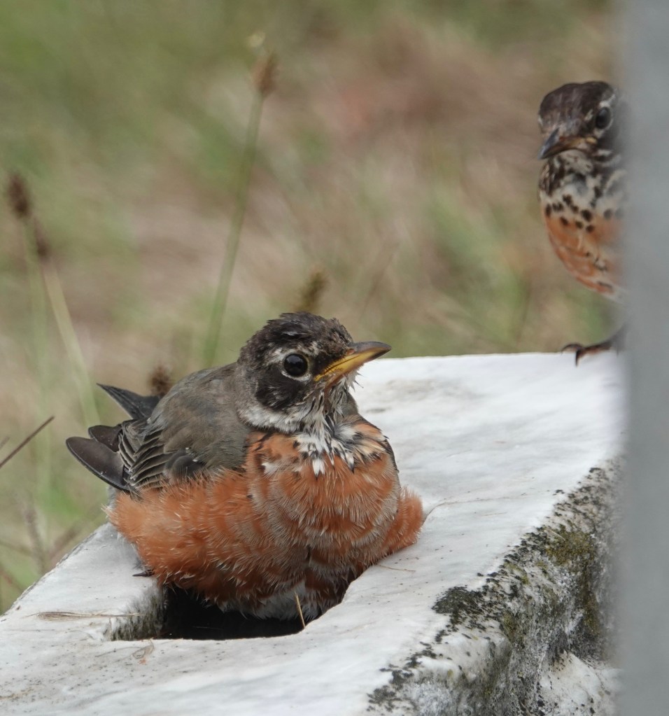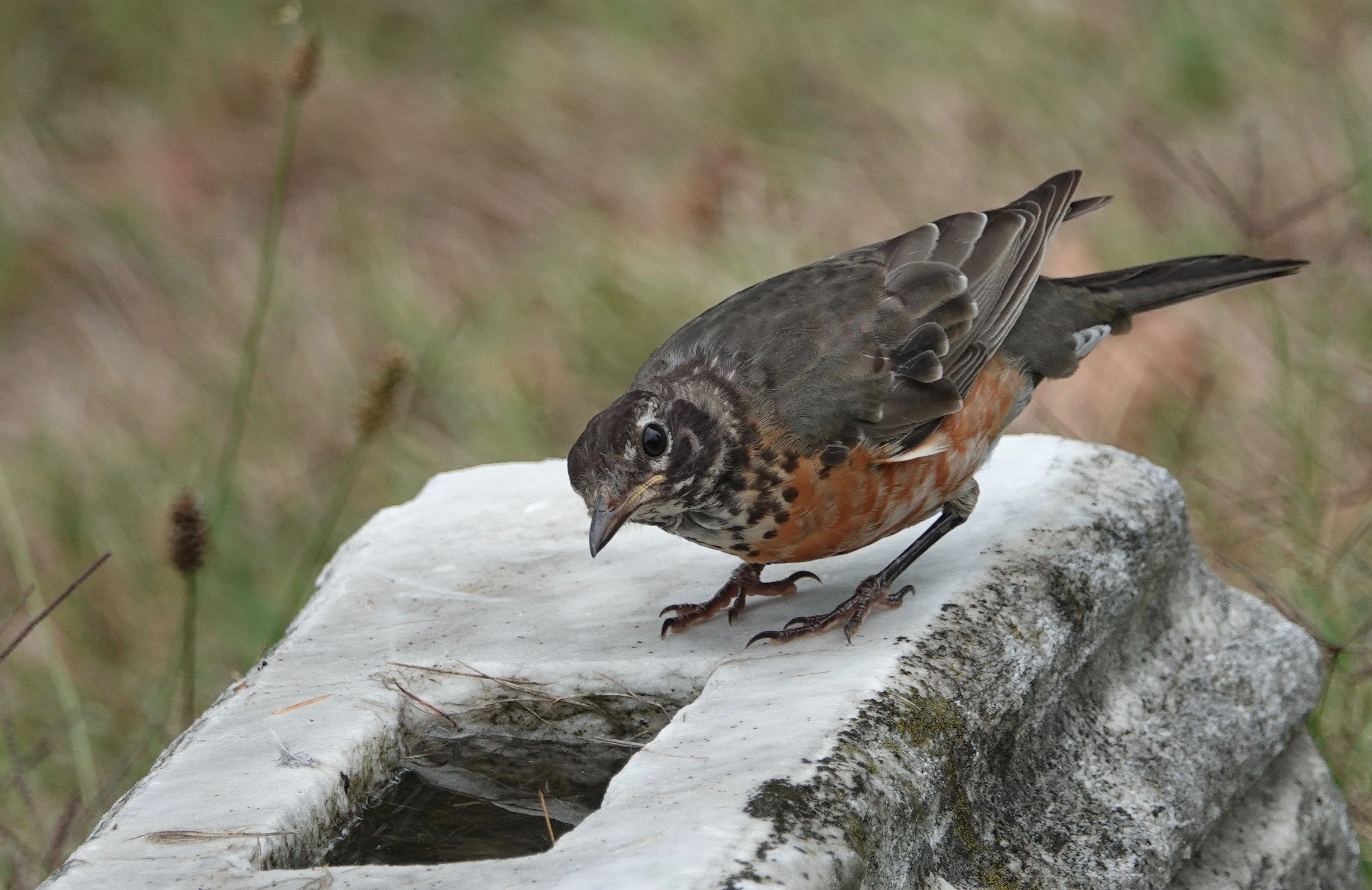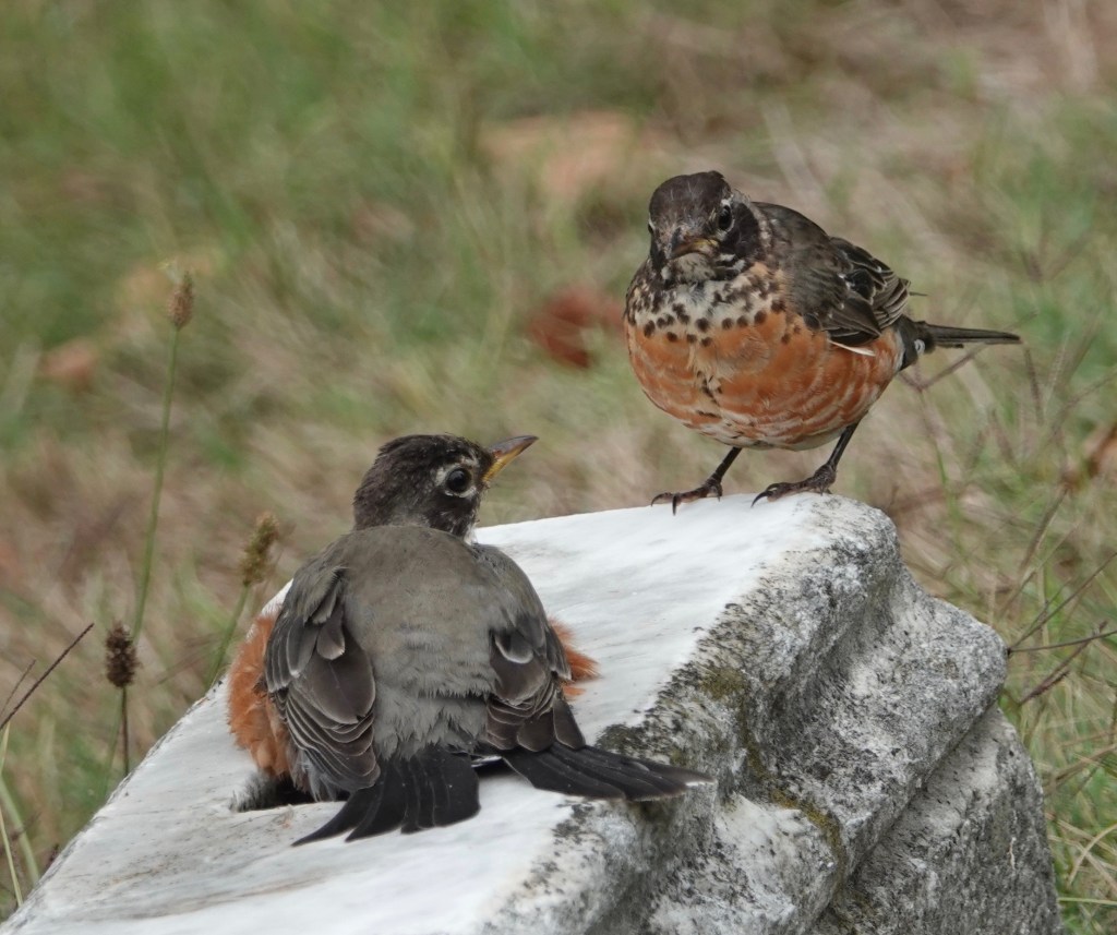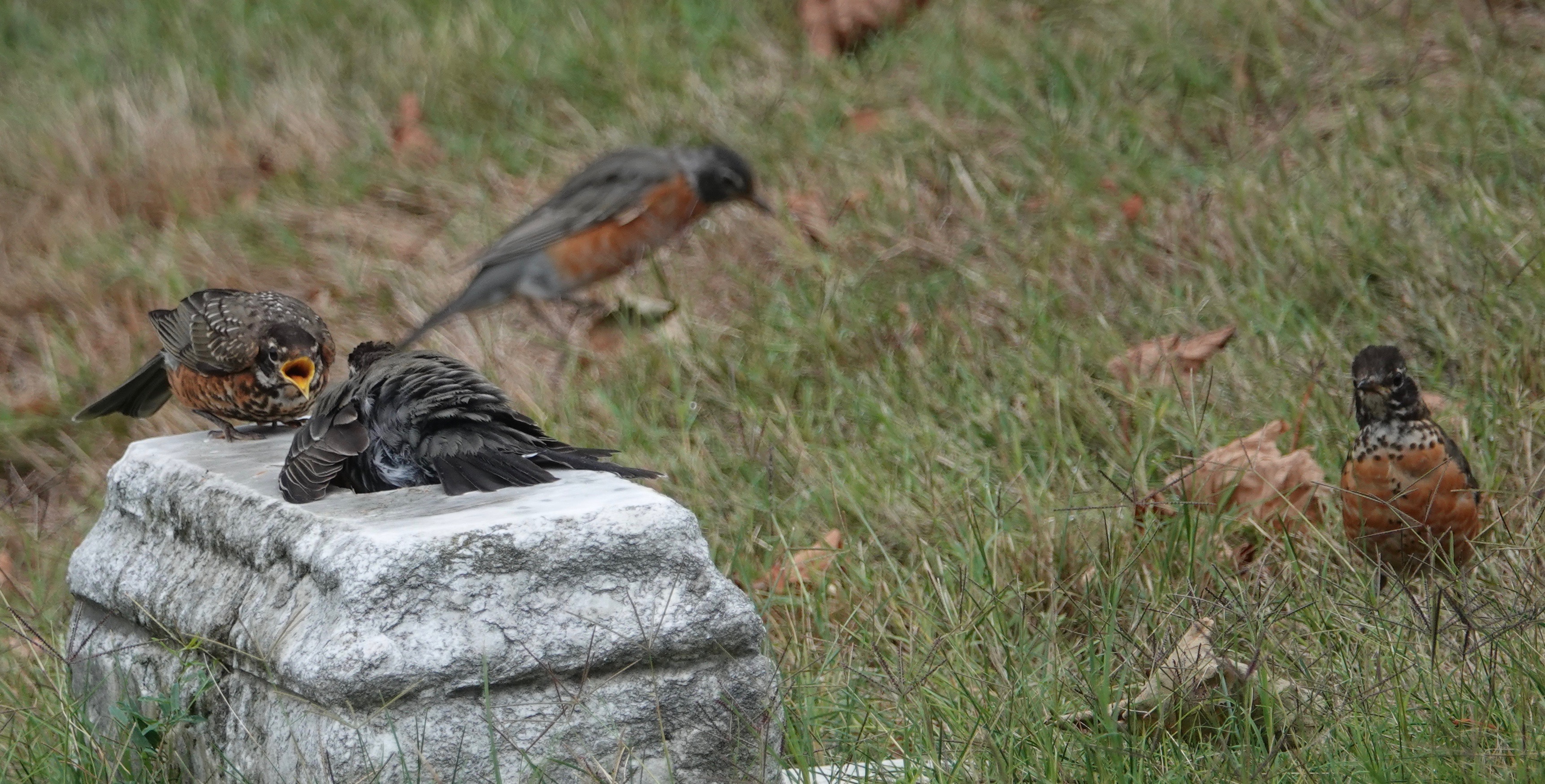 Yes, this Robin was sitting in small pool of water in this tombstone base. But not for long.So, as in certain hereditary Ruritanias, youth replaces age in the royal tub.