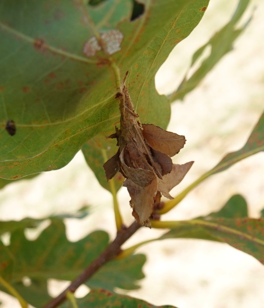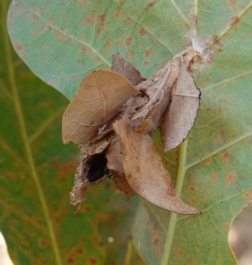 Beet Webworm Moth (Spoladea recurvalis), also known as Hawaiian Beet Webworm Moth.Tucked into the recessed entrance of a mausoleum along with three spiders, this little cluster of tiny stems/sticks surrounds the pupa of Psyche casta, the Common Bagworm Moth. There seems to be something else on it, at 5:00; perhaps something parasitic?More commonly seen is the “bag” of the Evergreen Bagworm Moth (Thyridopteryx ephemeraeformis), of which I think this is a variation, hanging off a White Oak leaf. This rolled edge of a leaf of a different White Oak, along with some silk inside, is evidence of a caterpillar. One of the Grass-Vaneer moths, usually seen fluttering about in advance of your feet and landing vertically on stems of grass. Very fuzzy palps make them look rather snouty.