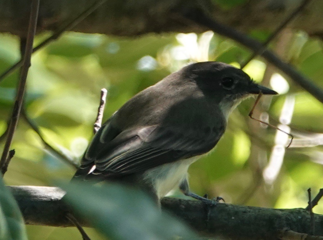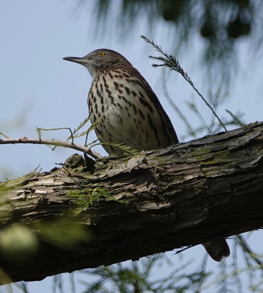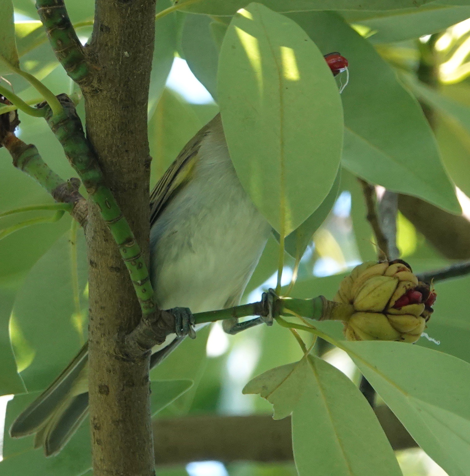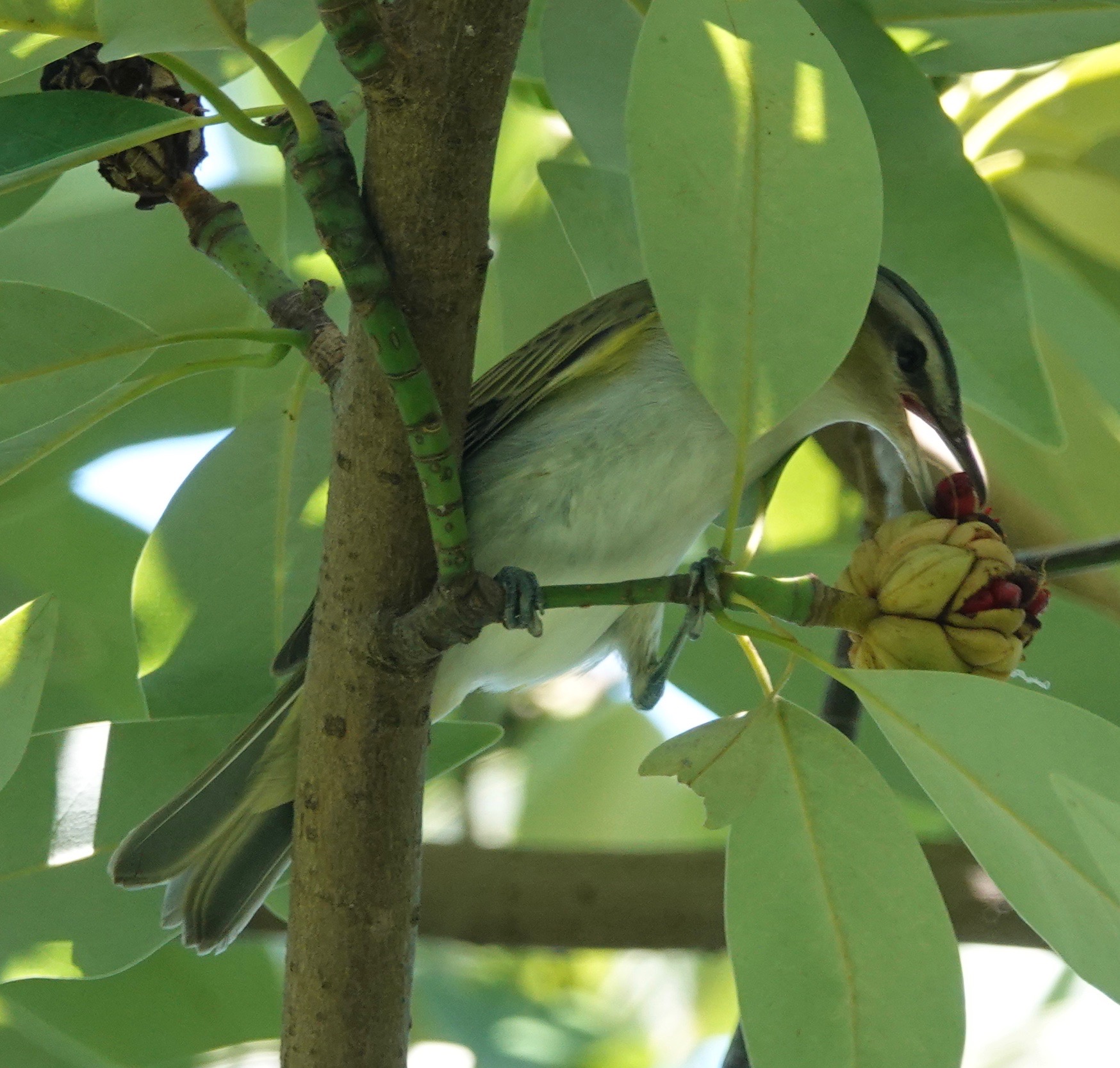 Eastern Wood-PeweeLarch-top Great Blue, near the koi-pond.House Wren, judging if I am edible.Brown Thrashers bred in Green-Wood this year. Is this one of them?We will be saying goodby to the Gray Catbirds, soon.Mockingbird skirts…Red-eyed Magnolia fruit-eating Vireo.Phoebe with somebody’s leg. Orthoptera?