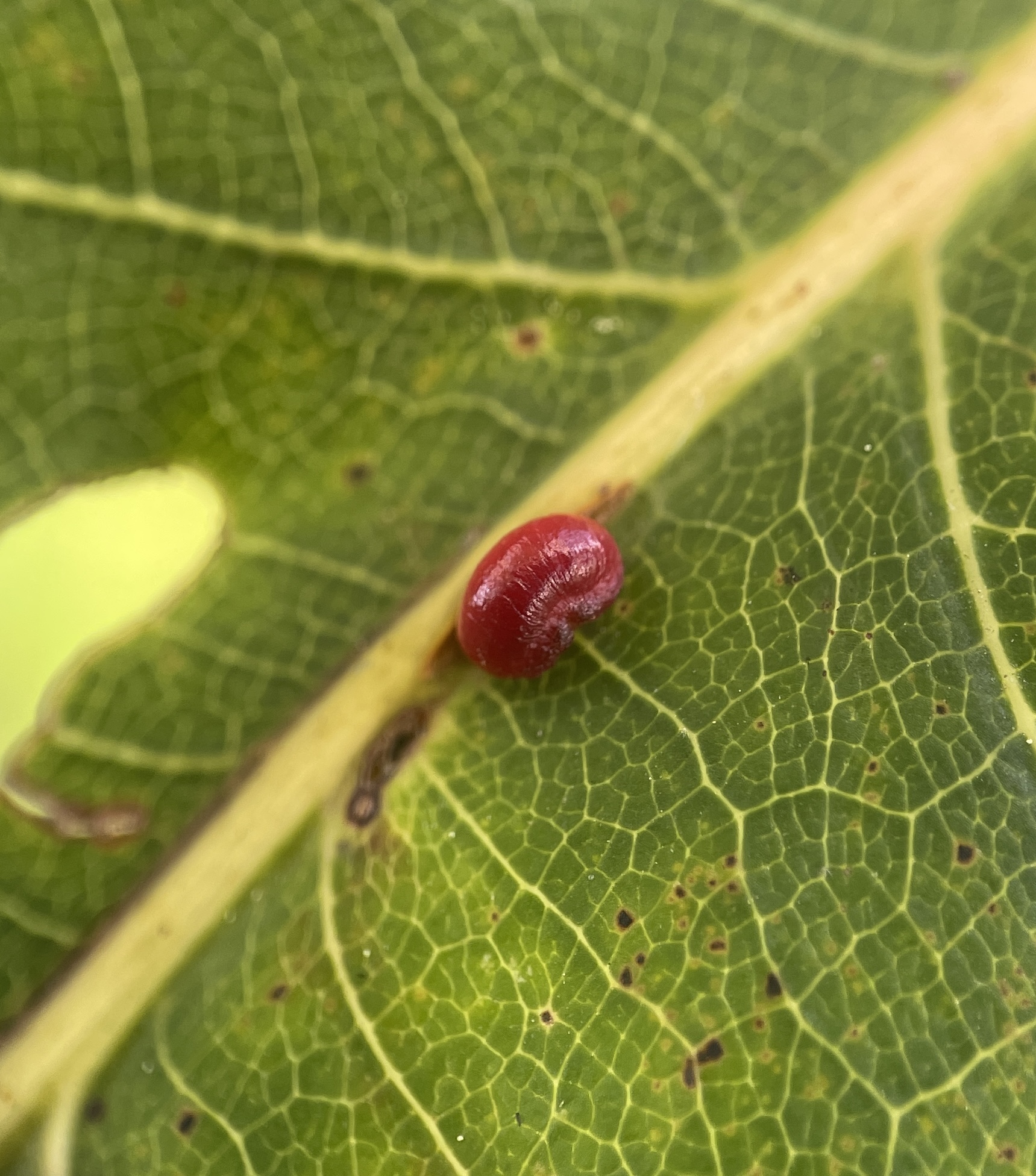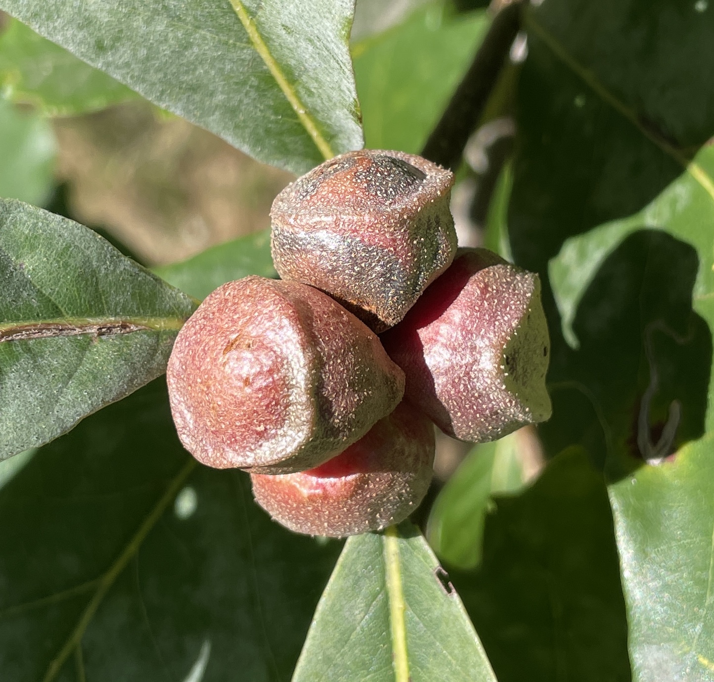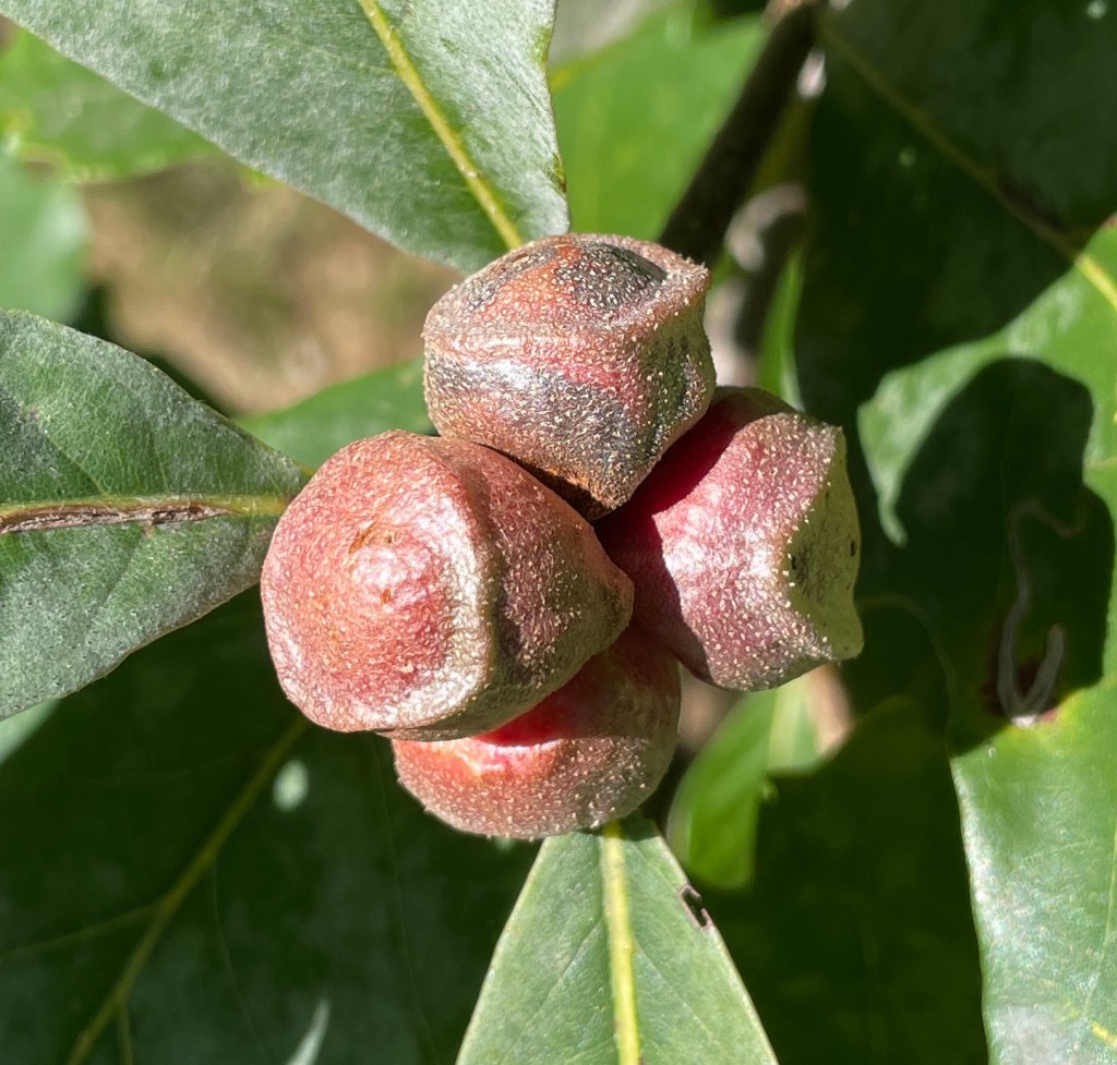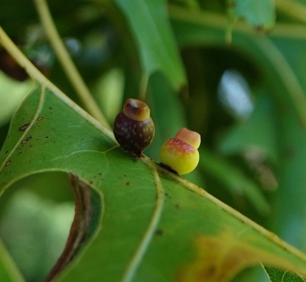 Kokkocynips rileyi on Scarlet Oak/Quercus coccinea. A new paper says the caps on these attract ants.This looks like it might be another Kokkocynips rileyi. On Northern Red Oak/Q. rubra.Zopheroteras guttatum on Shingle Oak/Q. imbricaria.Some of these are awfully small. Zopheroteras sphaerula on Red Oak/Q. rubraAndricus quercusstrobilanus on Swamp White Oak/Q. bicolor.They look like they might be chewy, but are actually quite hard.Philonix fulvicollis on White Oak/Q. alba. “On” except these had already fallen off the leaves and were underneath this majestic tree. Andricus dimorphus on fallen White Oak leaf.A lot of these are detachable and end up on the ground.