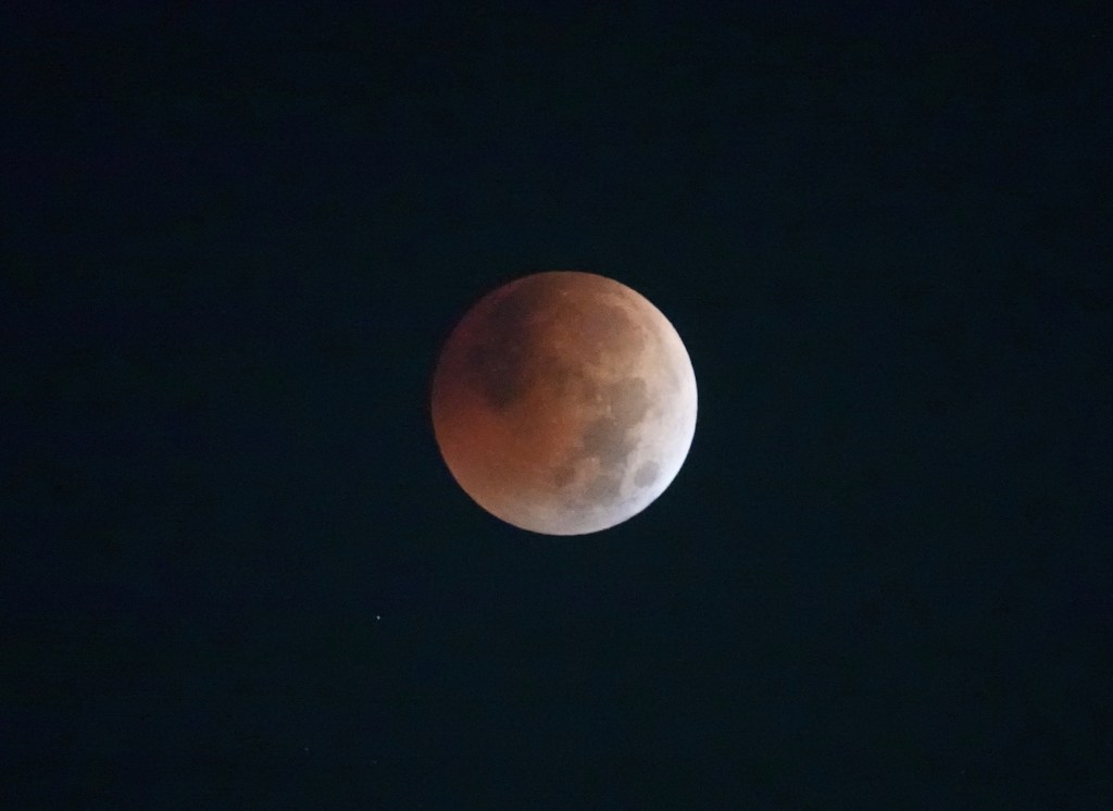 Tuesday morning’s lunar eclipse. Hand-held camera through the open window as cold air rushed in about 5:20 a.m. I was wearing shorts outside Monday when the temps were in the mid-70s. It was in the 40s Tuesday morning. A cold front like that this time of year should be portrayed on weather maps as being pointy with the long bills of American Woodcocks. Mid-day Tuesday, then, found me in Green-Wood, where eight of the timberdoodle-chickens burst out of the leafy, shady ground before I saw–much less photographed–a single one.