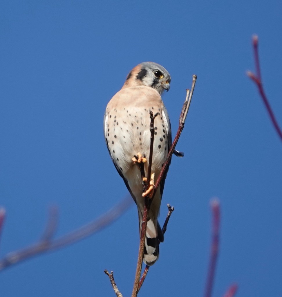 This one was keeping an eye on me and the two American Kestrels atop the nearby chapel. I first became aware of these exotic lizards via a photo making the birding community rounds: a Kestrel was carrying one. Since then, I’ve seen the local Kestrels dining on them. A Red-tail too.