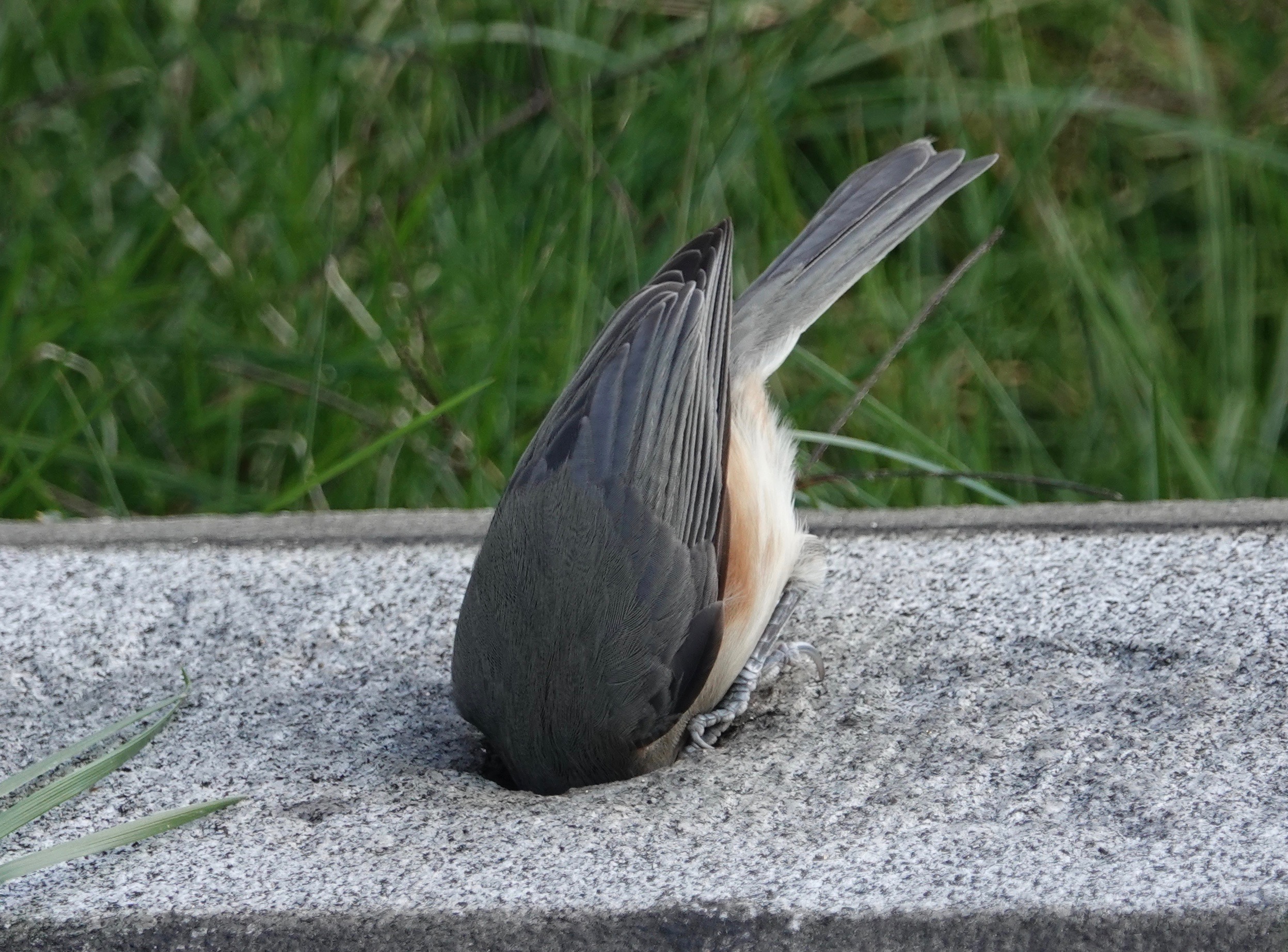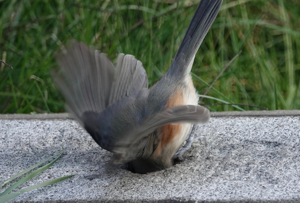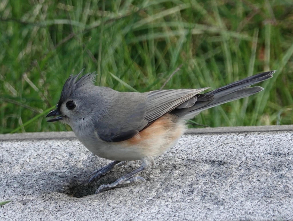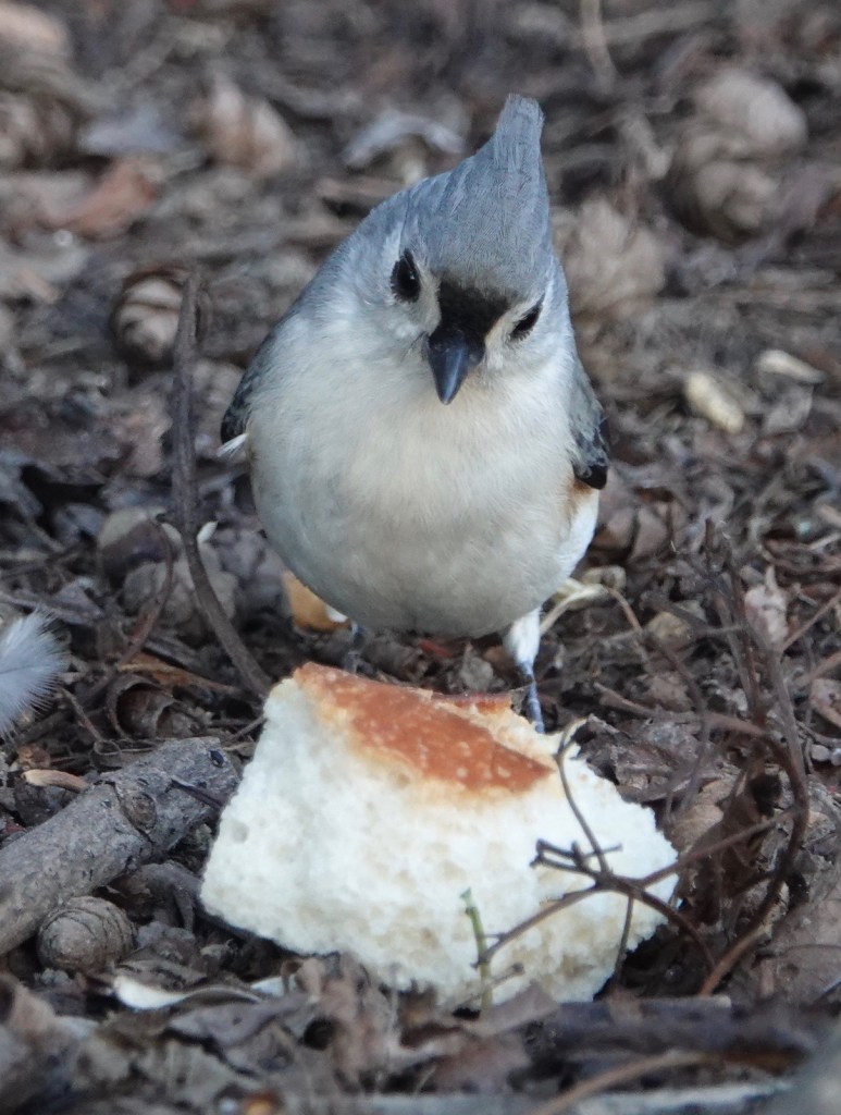 Not just bird-feeder-gangsters, Turfted Titmice will evidently go for the processed grains as well. And acorns. Remember that time I saw one scavenging a Winter Wren?