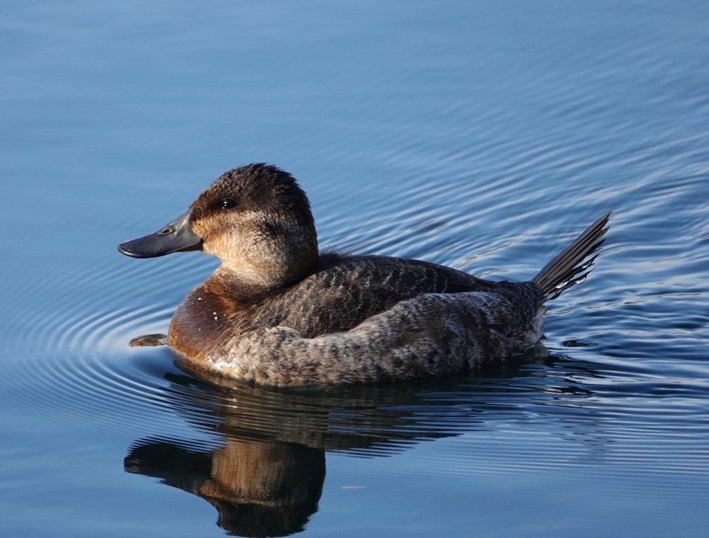 There’s usually a flotilla of Ruddy Ducks (Oxyura jamaicensis) on Prospect Park Lake this time of year. This female was hanging out solo on Sylvan Water in Green-Wood for at least five days when I took these pictures.