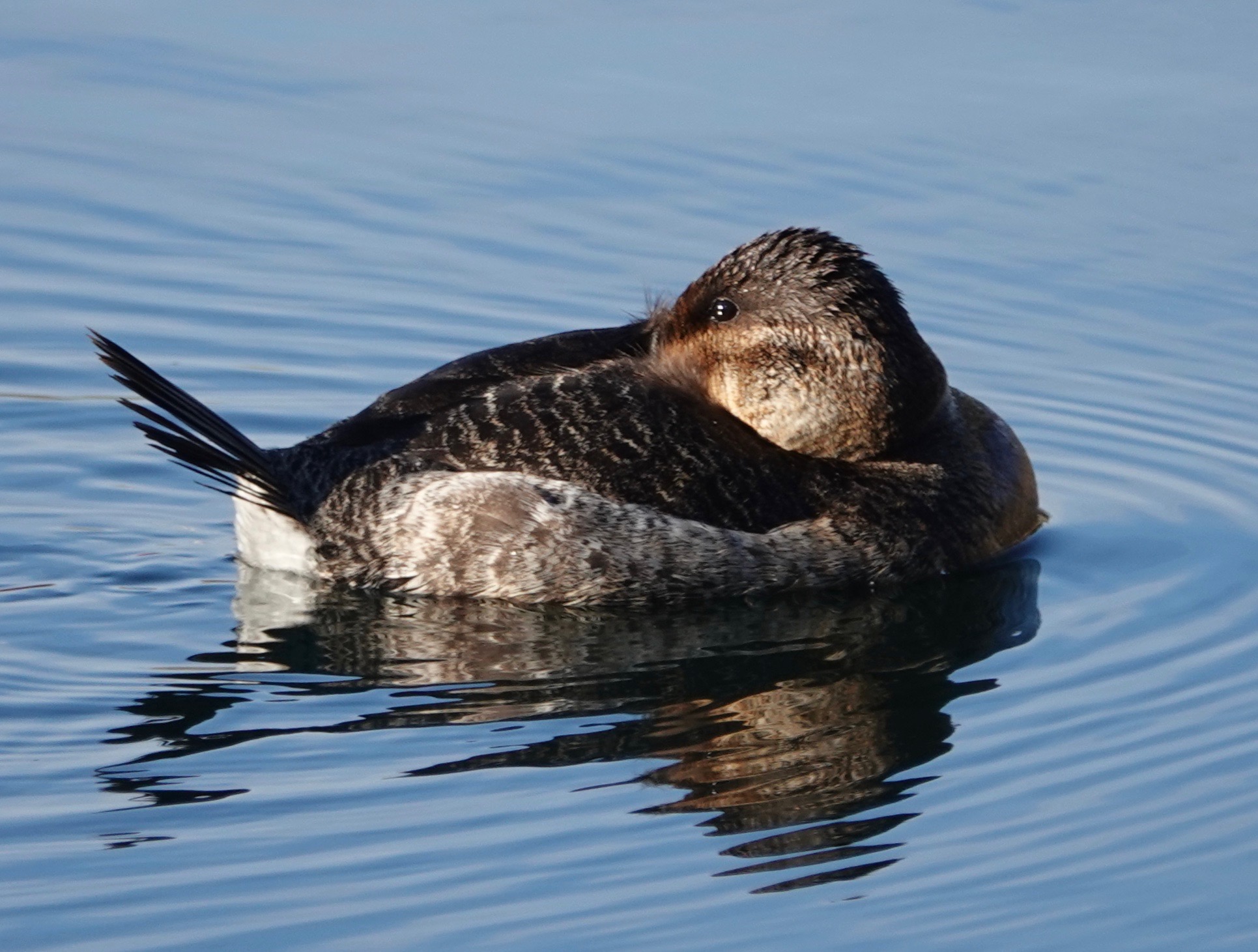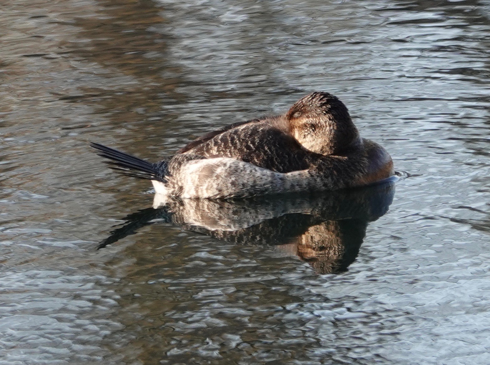 There’s usually a flotilla of Ruddy Ducks (Oxyura jamaicensis) on Prospect Park Lake this time of year. This female was hanging out solo on Sylvan Water in Green-Wood for at least five days when I took these pictures.