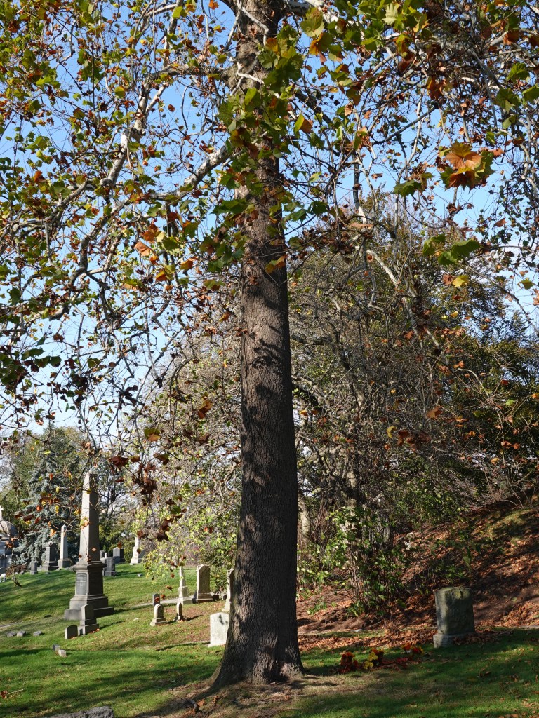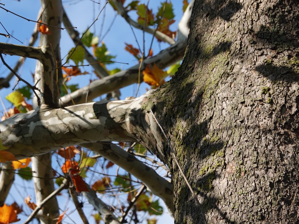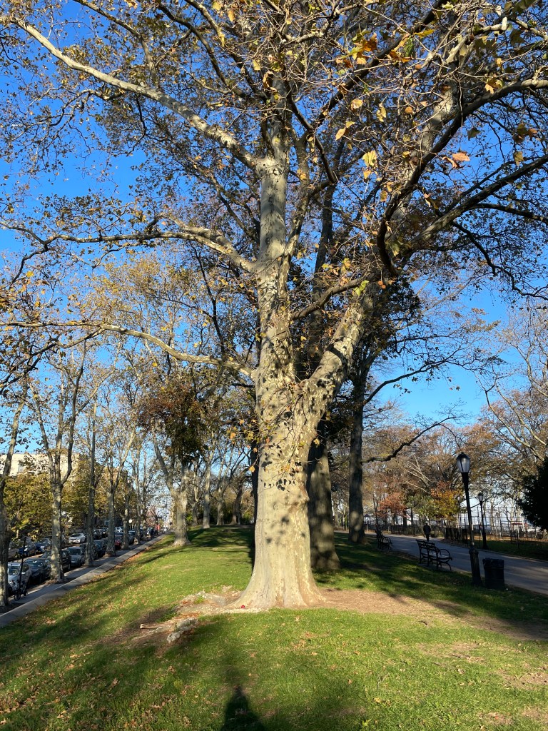 American Sycamore (Platanus occidentalis) is sometimes confused for its genetically crossed sibling, London Plane (Platanus × hispanica), which is all over the city, on streets and in parks. In fact, finding an American Sycamore is a good challenge.