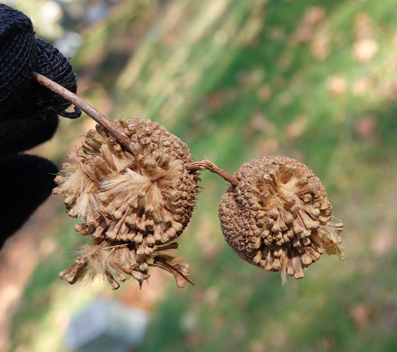 American Sycamore (Platanus occidentalis) is sometimes confused for its genetically crossed sibling, London Plane (Platanus × hispanica), which is all over the city, on streets and in parks. In fact, finding an American Sycamore is a good challenge.