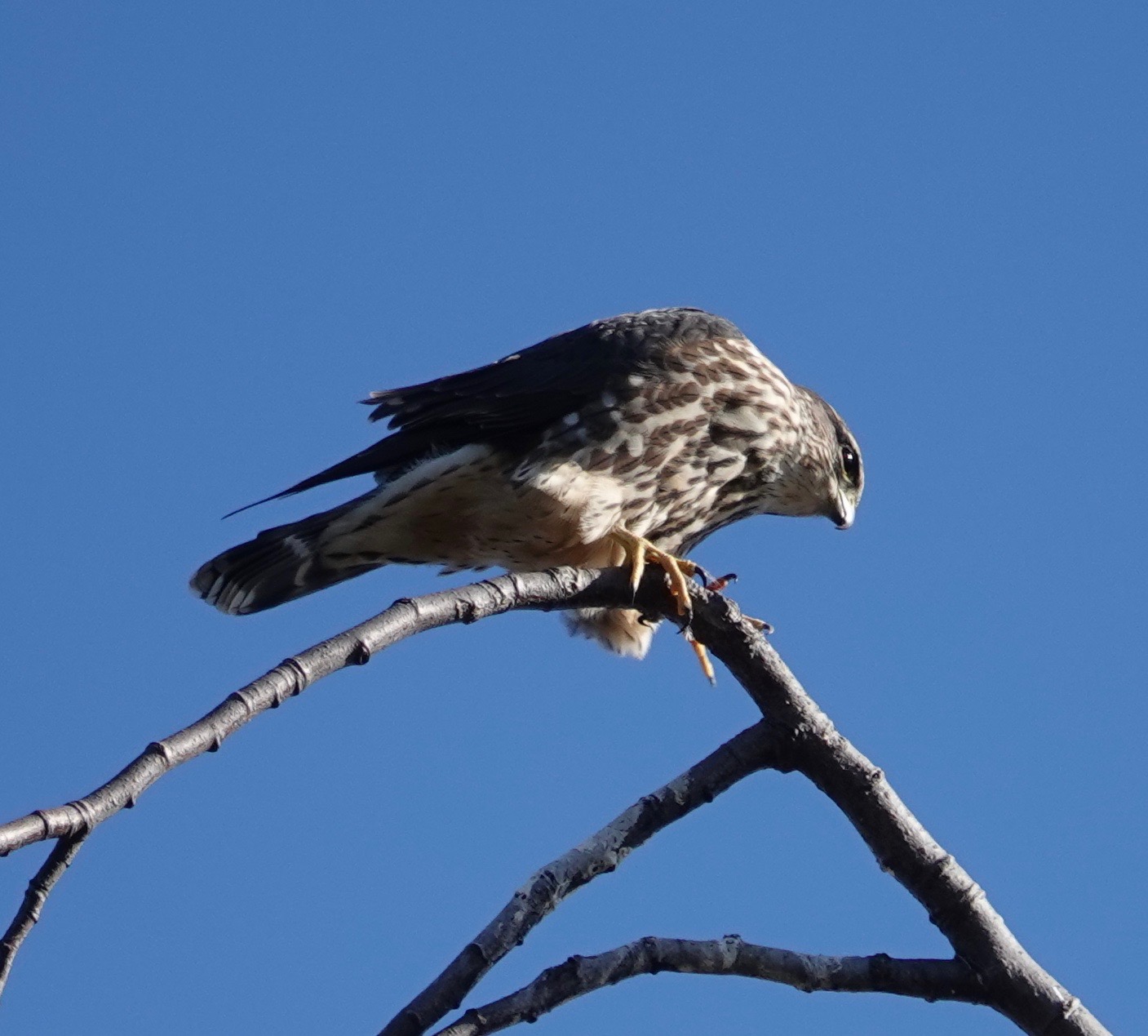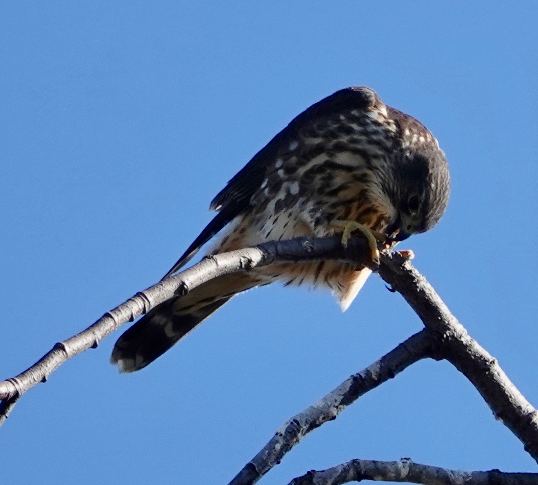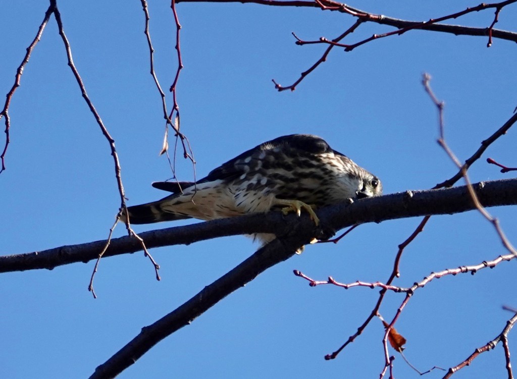 Not just the same tree, but the same spot. This is a favored tree of Merlins (it’s been at least two years now, is it more than one Merlin?).