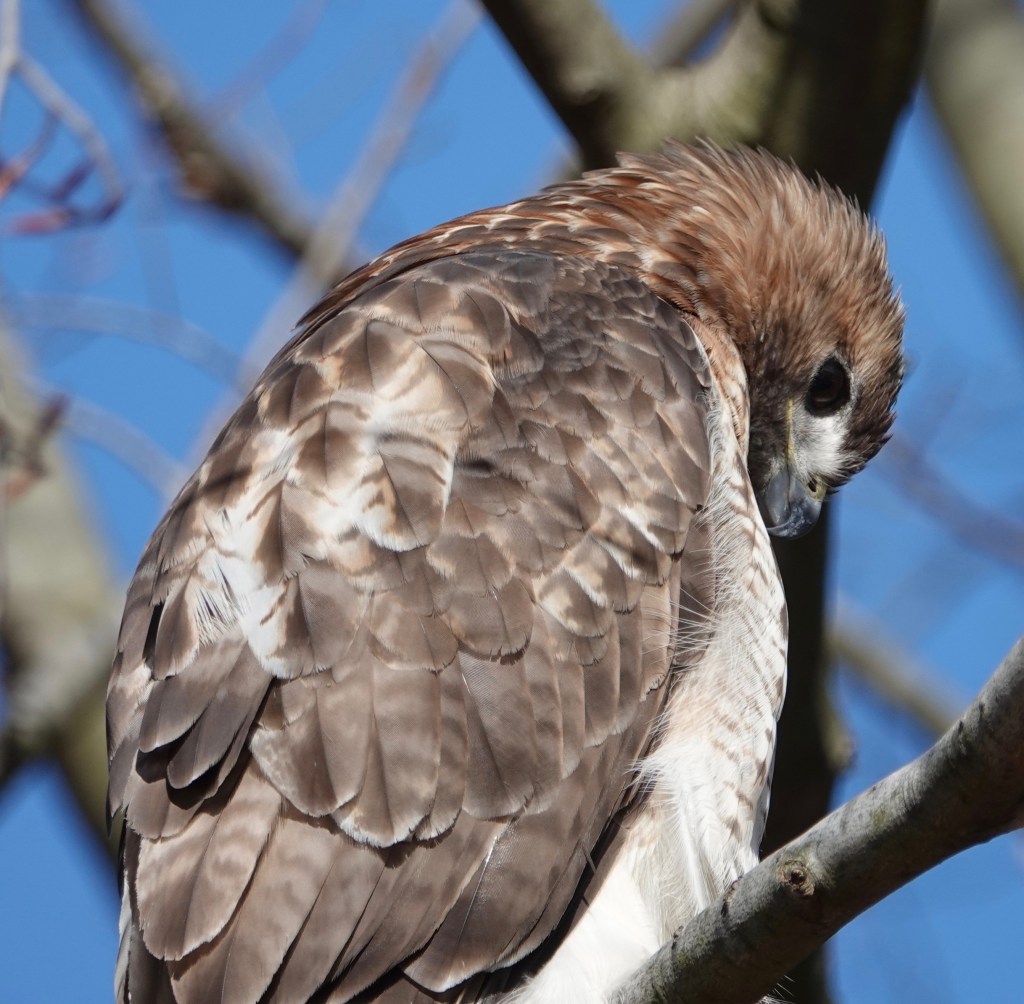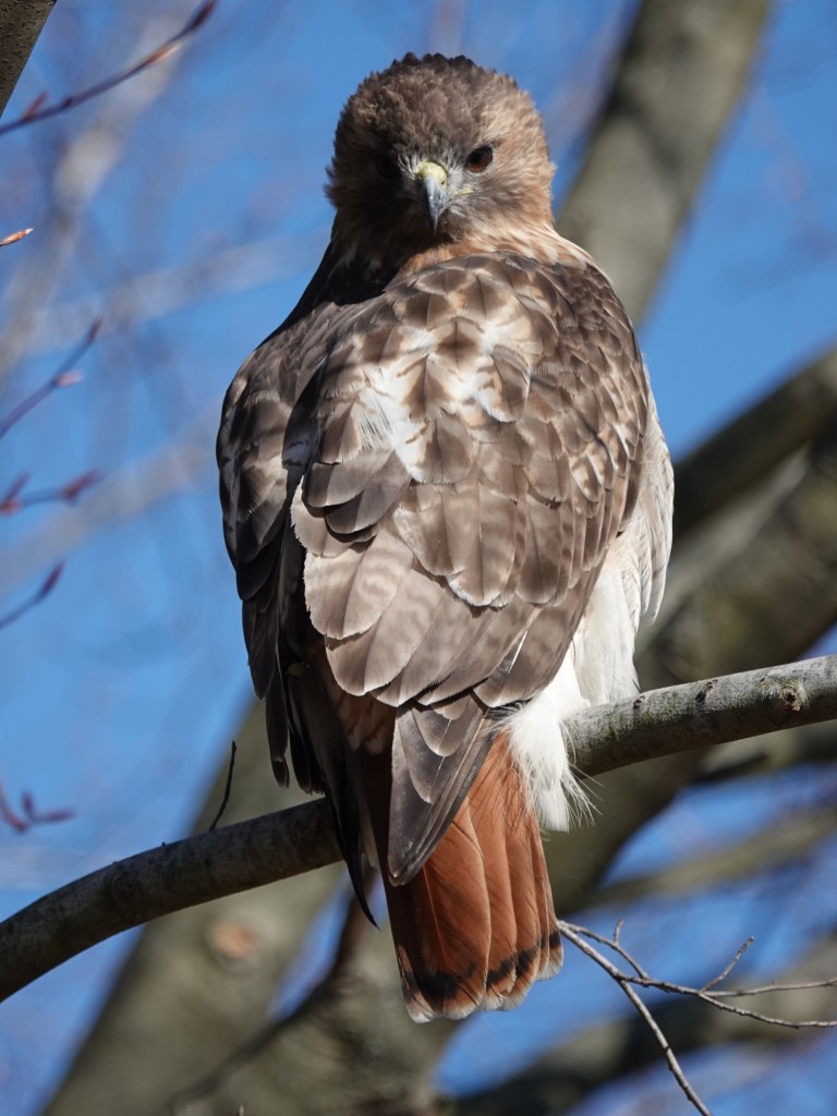 Moments, six of them, later, I was ten feet from an adult Red-tailed Hawk perched on the edge of the Long Meadow. This town is absolutely filled with raptors!