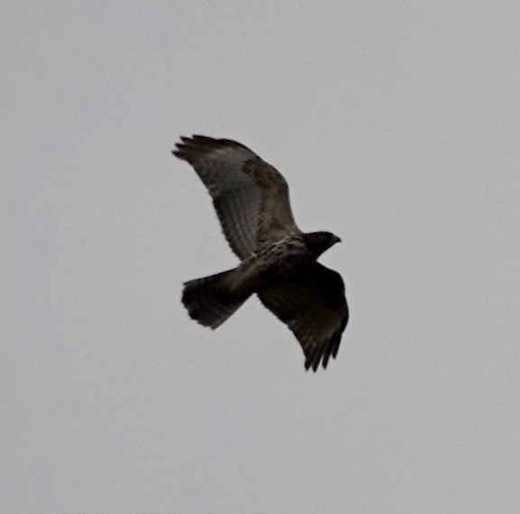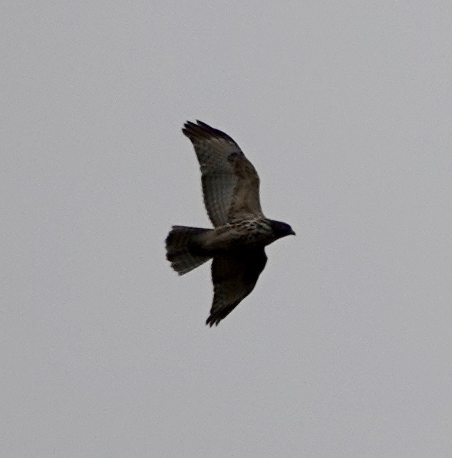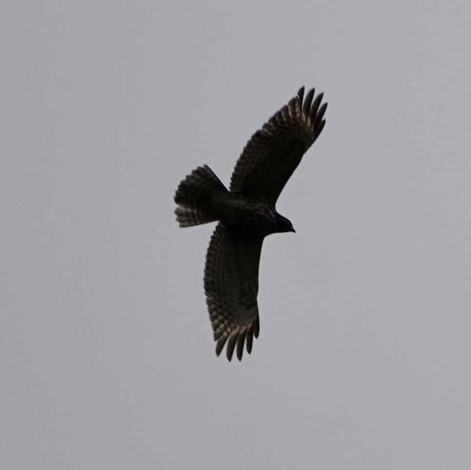 On a dark and gloomy day, this distant hawk looked different from the usual.