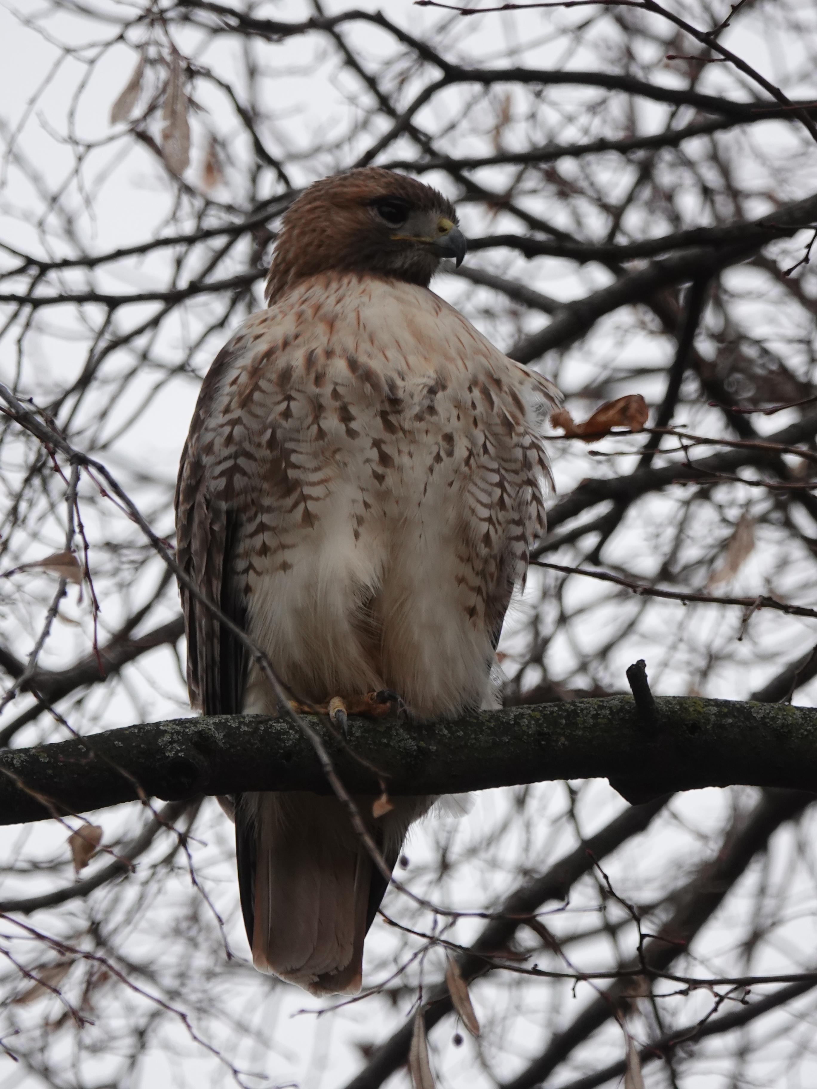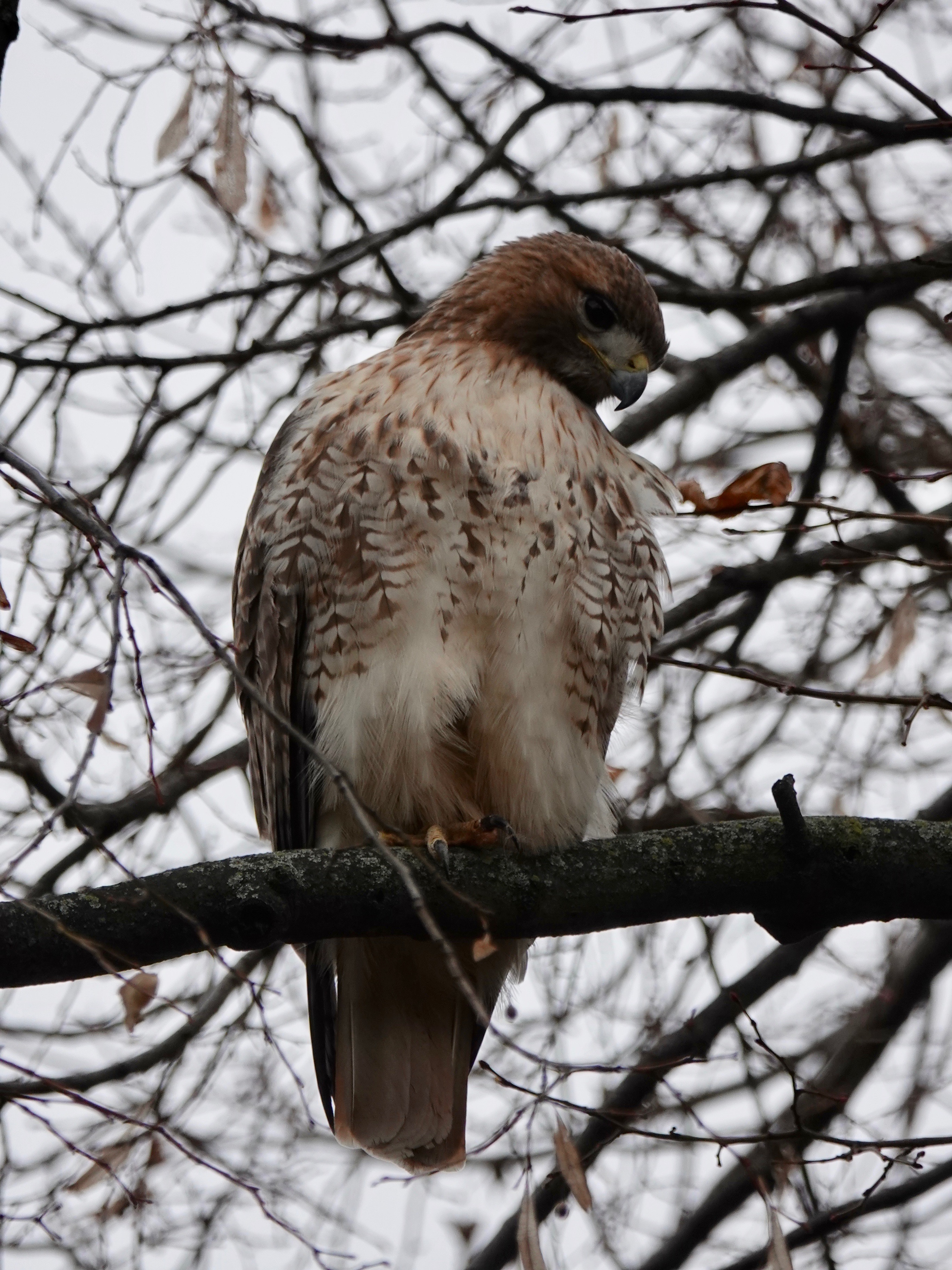 Red-tails come in different flavors. I ran into a couple with some red-highlights. (Had to double-check they weren’t Red-shouldered.)