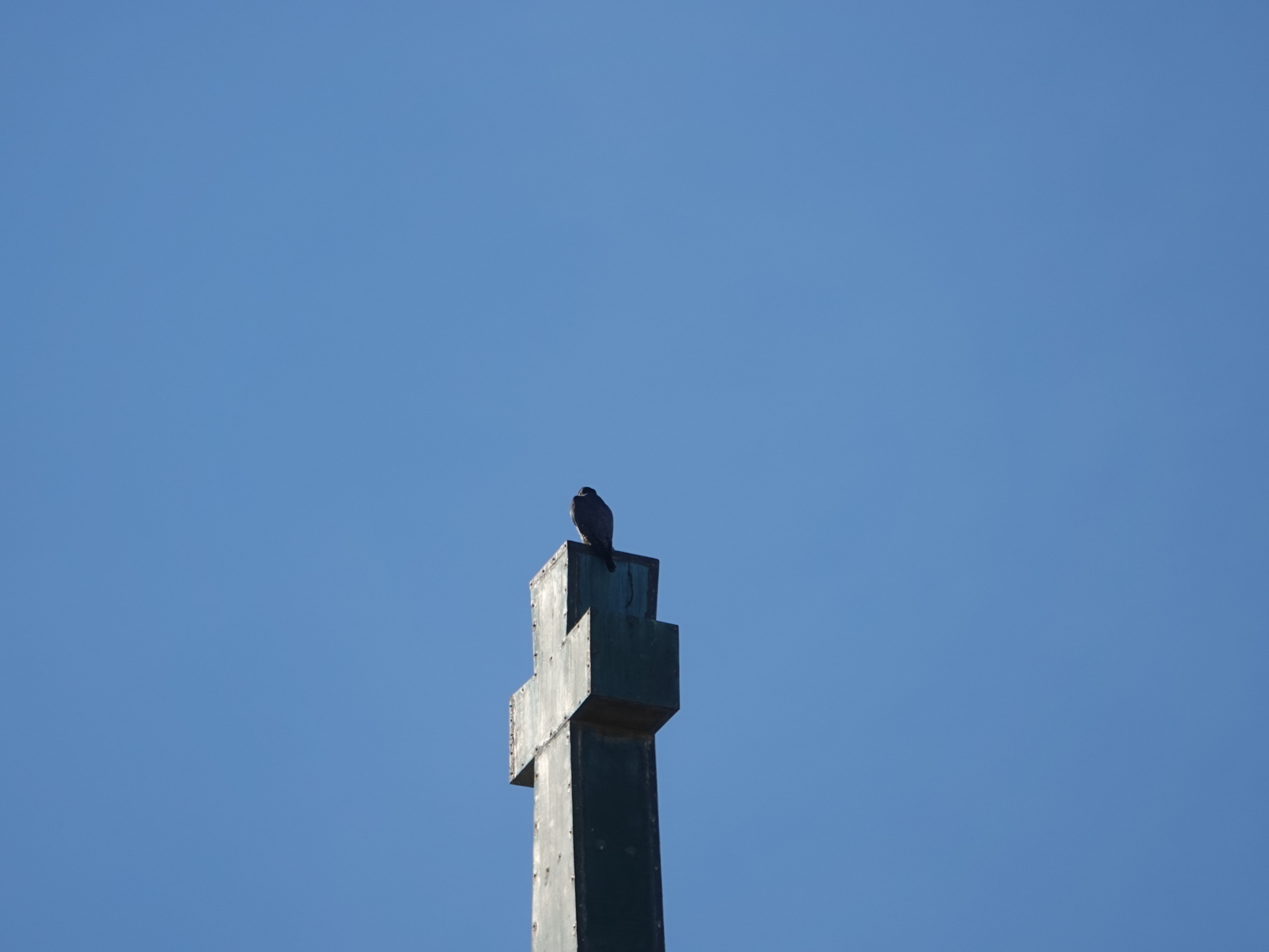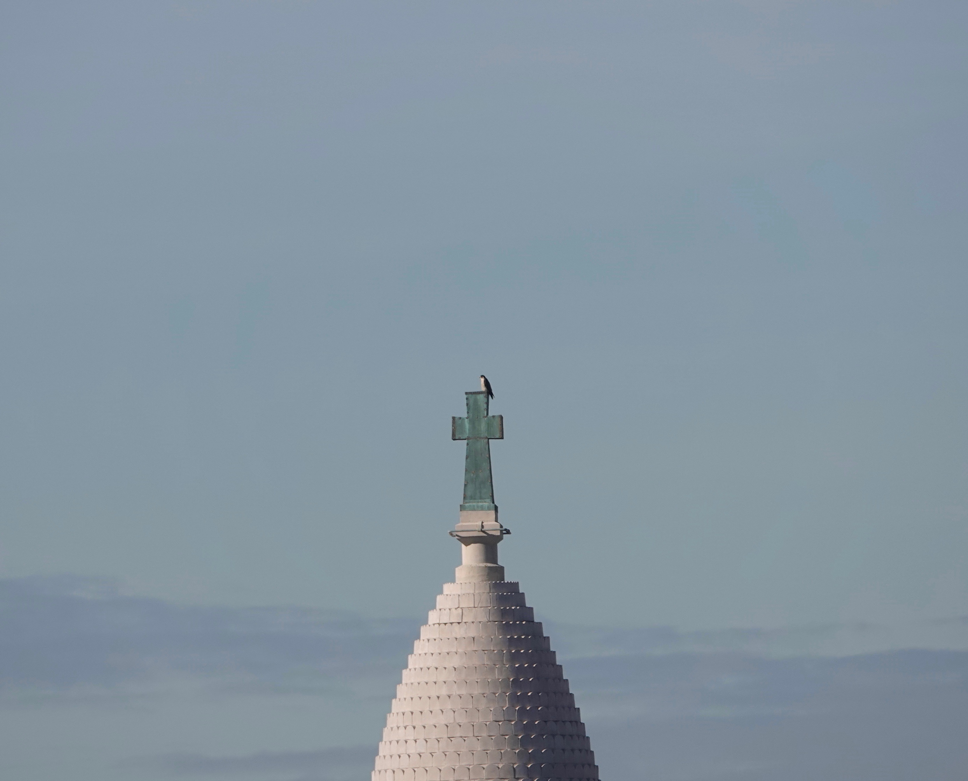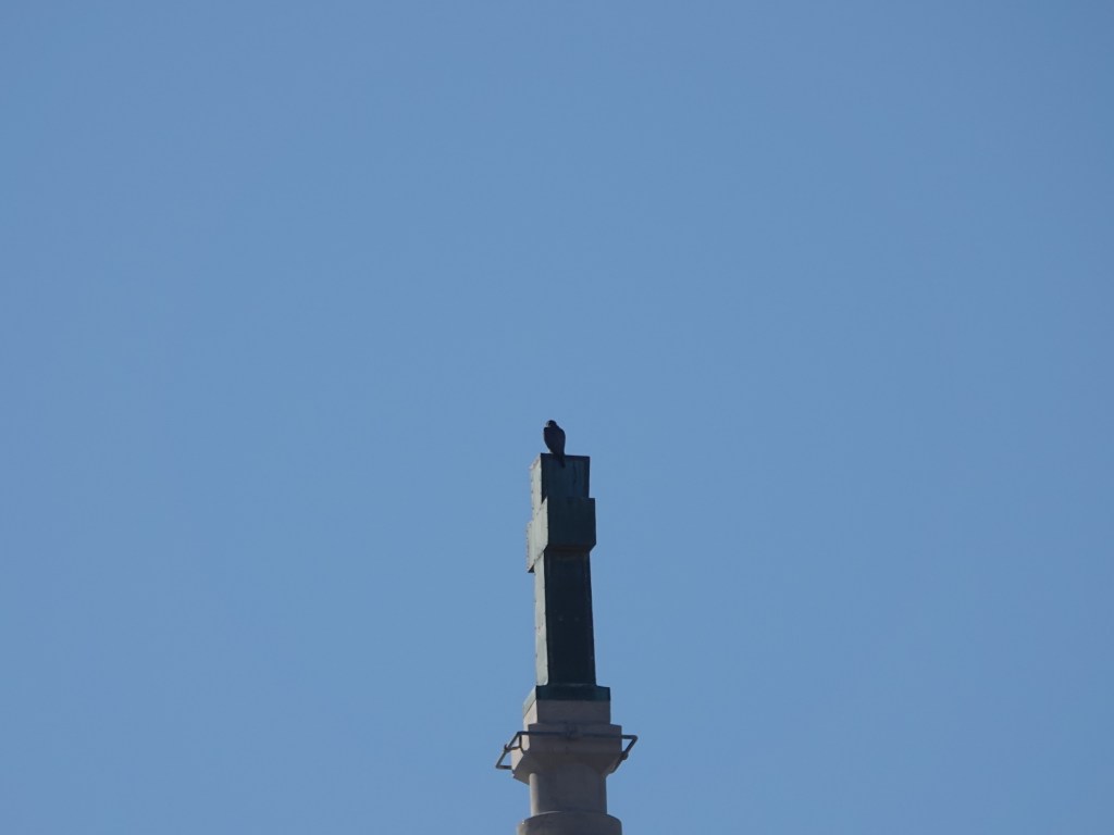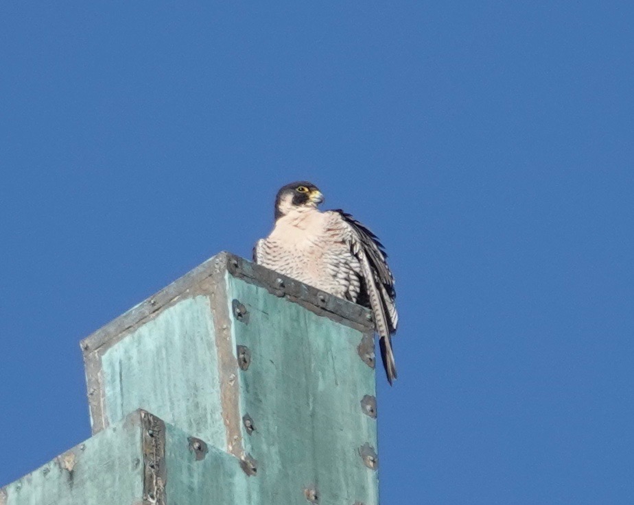 From a five blocks away, you can see there is a disturbance in the raptor force, something atop St. Michael’s. From two blocks away, where this picture was taken, it’s Peregrine confirmation.