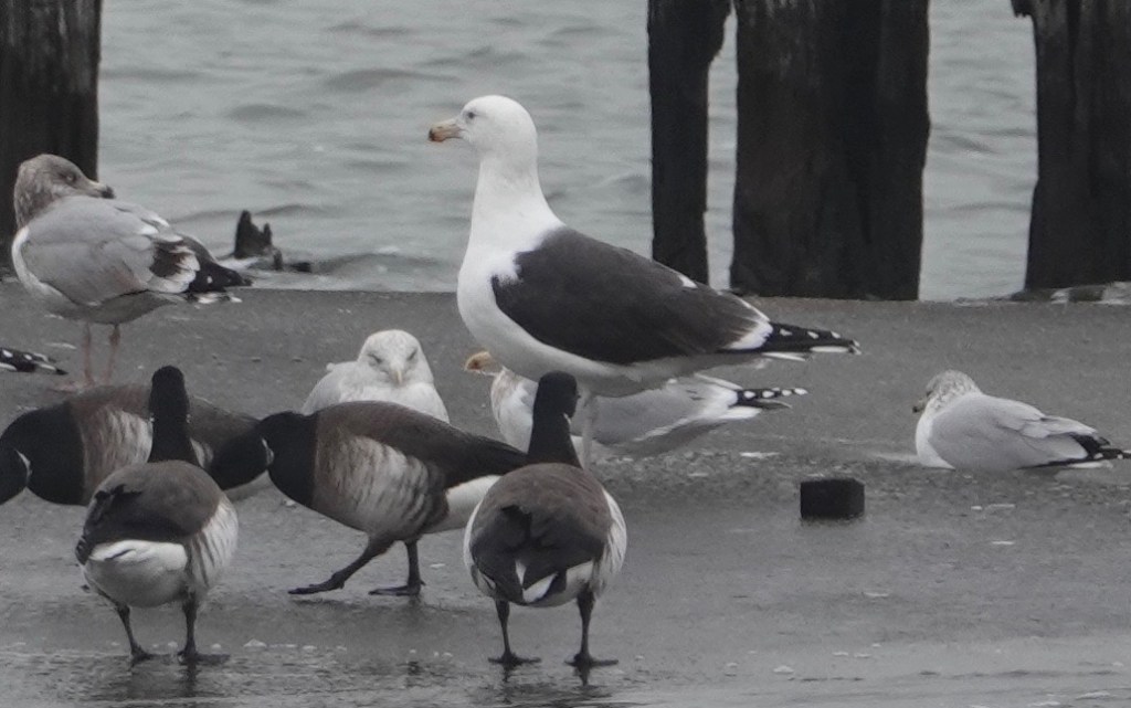 Great Black-backed Gull amidst Herring, Brant, and Ring-billed. Great Black-backed is the world’s largest species of gull.