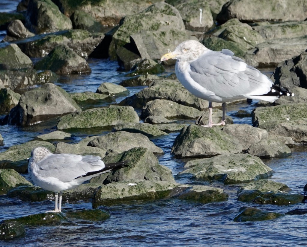 (A sunny day!) Ring-billed left, Herring right.