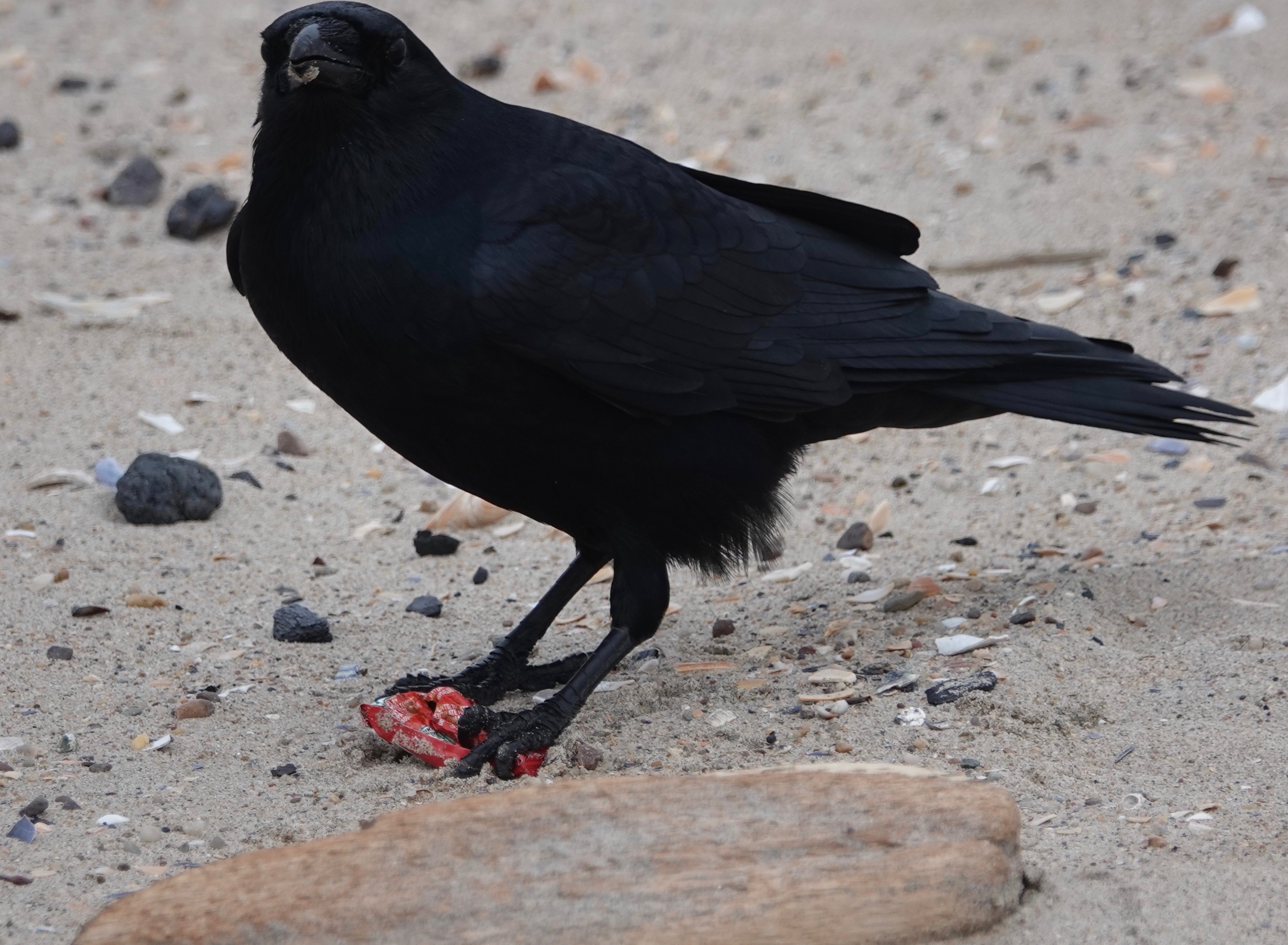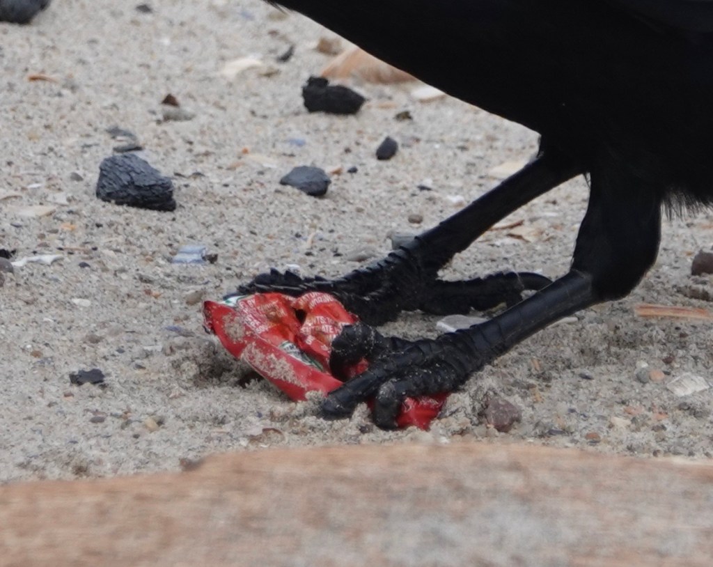 This was the same crow as yesterday. I thought the bird was working some raw or rare meat.