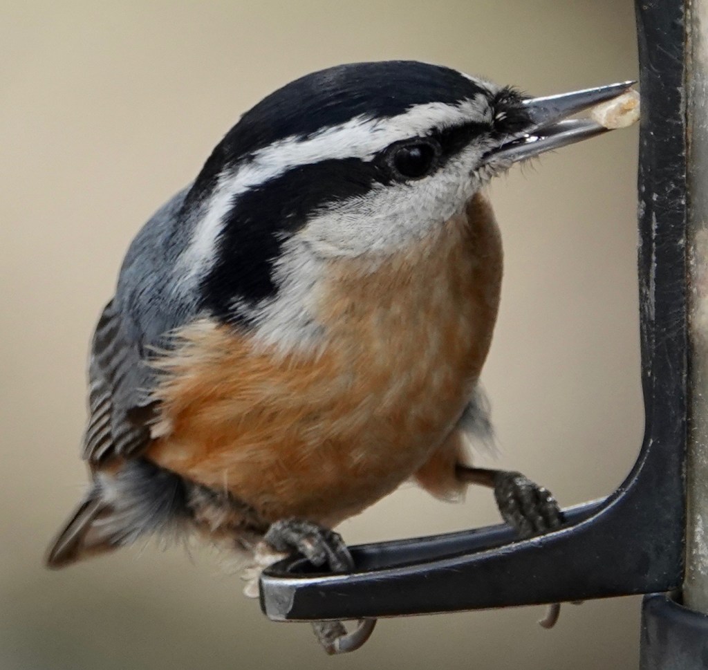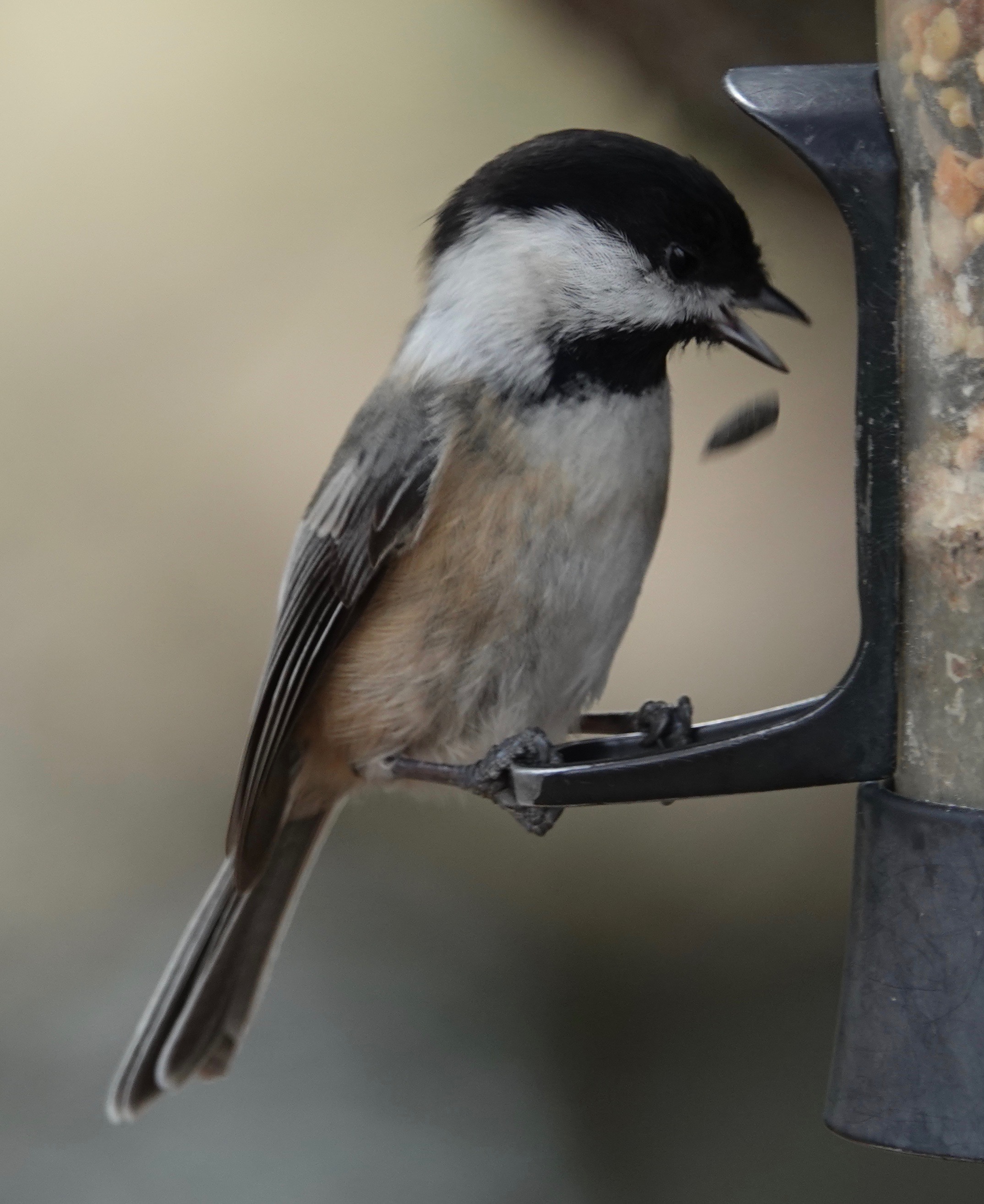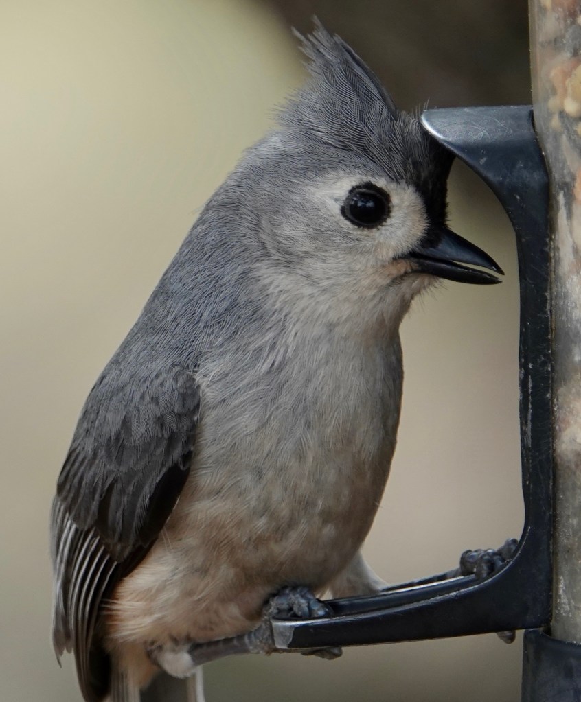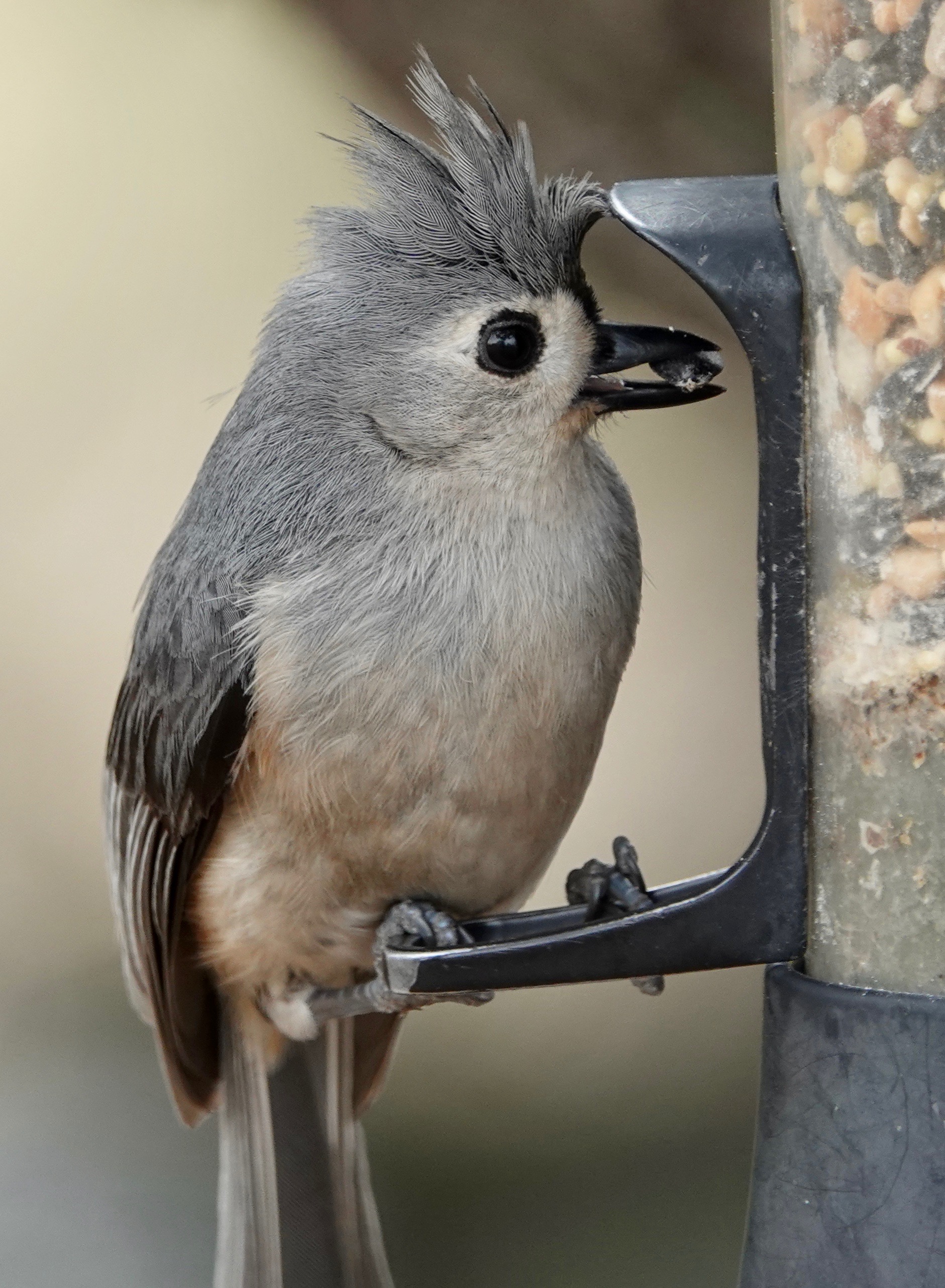 The long-time feeder hanging in the Callery Pear tree above Sylvan Water lost its home when the tree was cut down this winter. The feeder was moved to a pine nearby. Here are highlights of some ten minutes watching of the rapid-fire action among half a dozen Tufted Titmouses, Three White-breasted Nuthatches, one Red-breasted Nuthatch, and a Black-capped Chickadee.