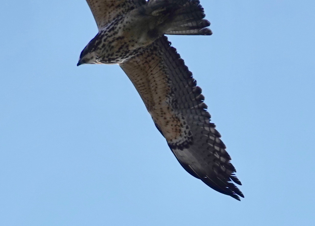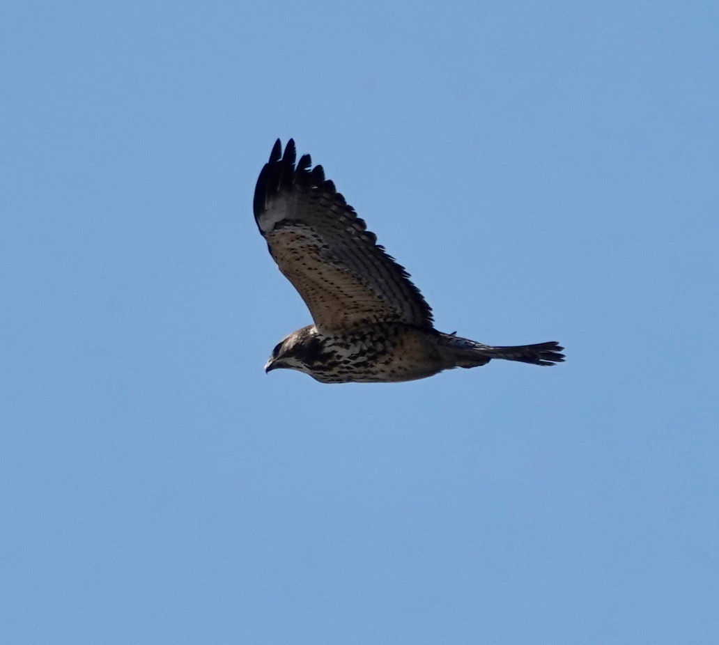 In bright sun, the view-screen of the camera is hard to see, so it wasn’t until I got home that I saw the detail here. This isn’t the expected Red-tailed Hawk.