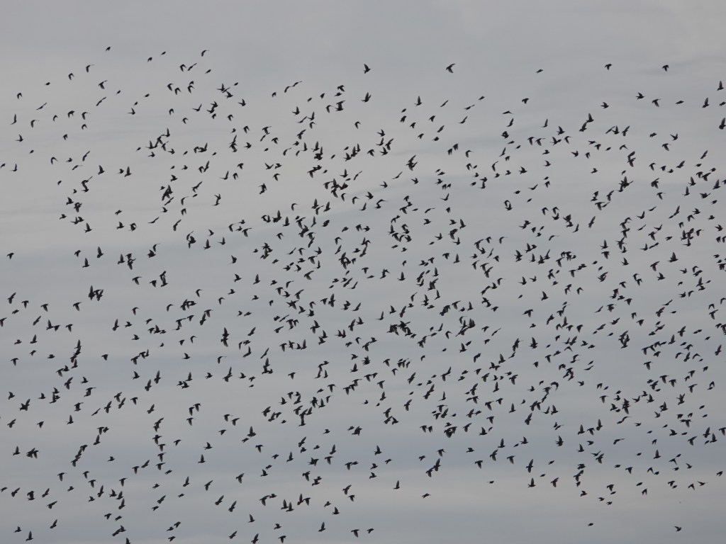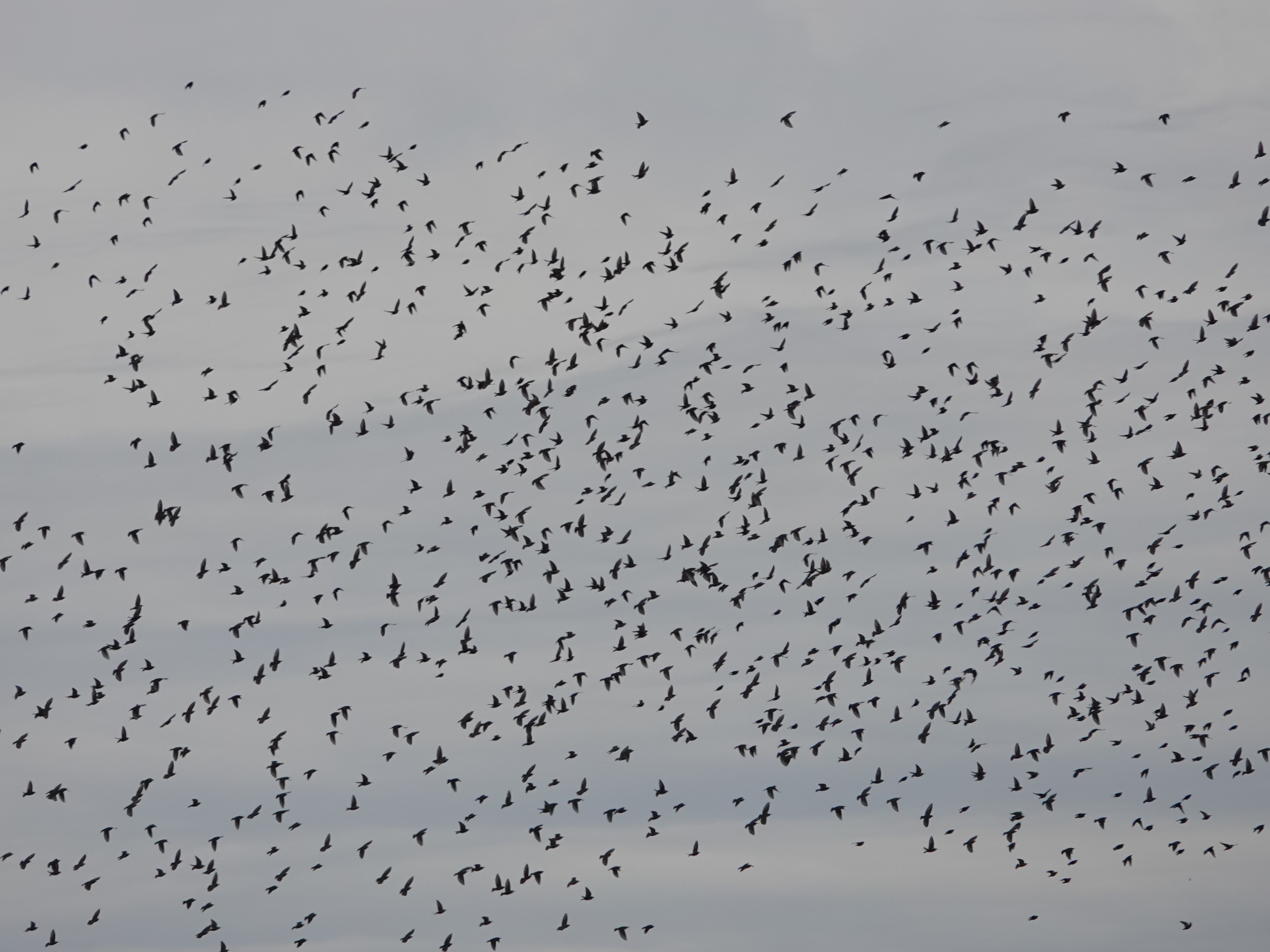 Quite the murmuration (for Brooklyn) at the Sims recycling facility, where gulls and crows also congregate over the garbage.