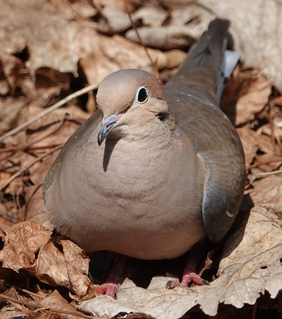 1. Last summer we had a pair of Mourning Dove who raised four sets of kids: two at a time. They were in a minimalist nest consisting of a few leaves on the bottom of an oblong basket hanging under the canopy of our trumpet vine–right on our deck. We were able to watch them share the incubating, feeding, and, even after each set fledged, continue to regurgitate into their mouths, even as they mated in preparation for the next set! And I thought I’d worked hard.