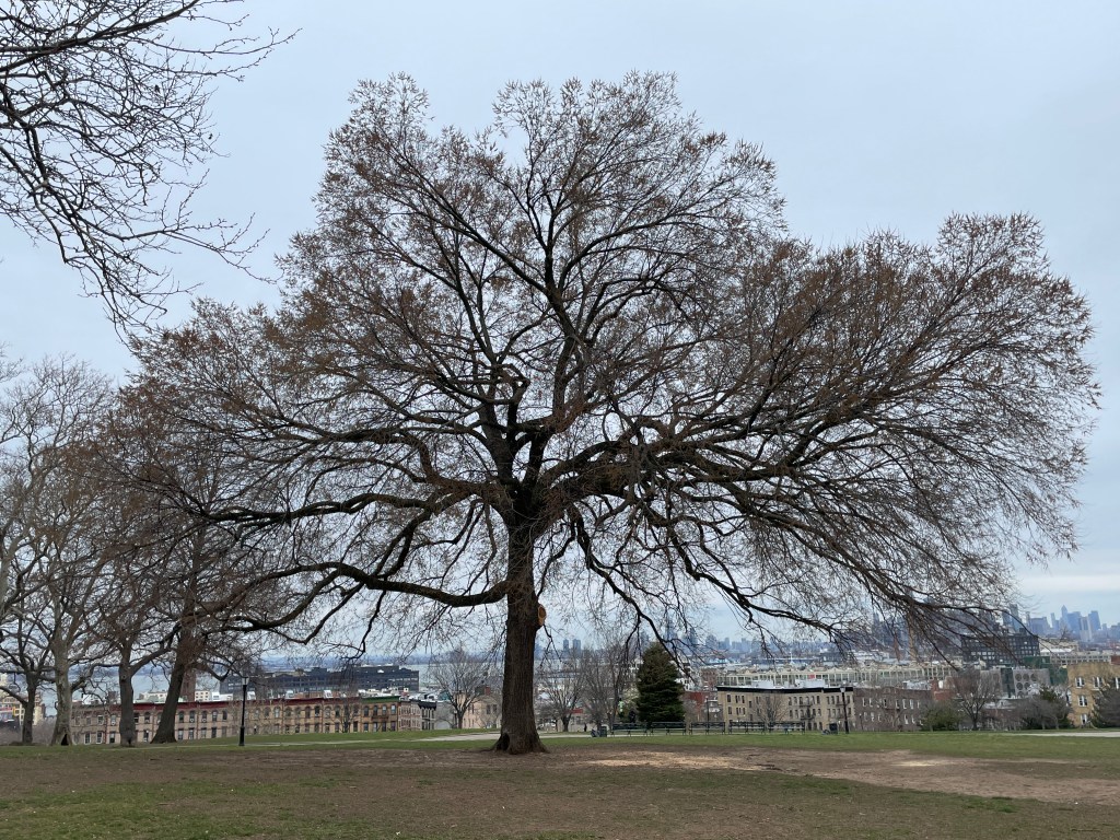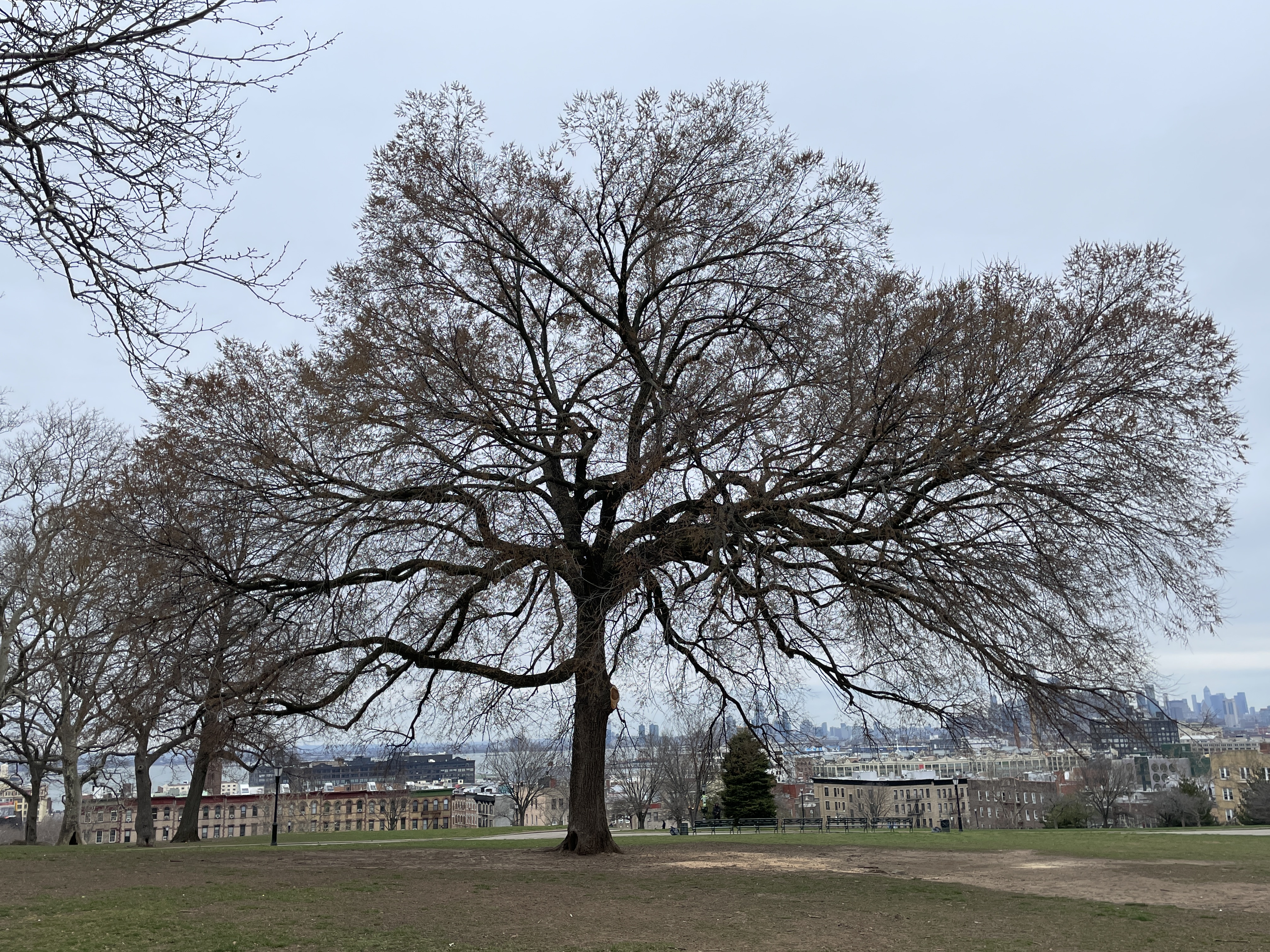 The great American Elm in Sunset Park a few years ago. During 2015 and 2016, I photographed this tree through the seasons. Note that incredible branch on the right; it swooped down, it swooped up.