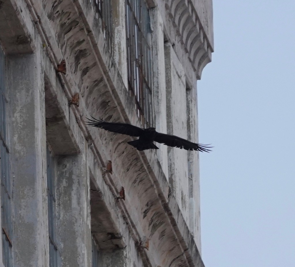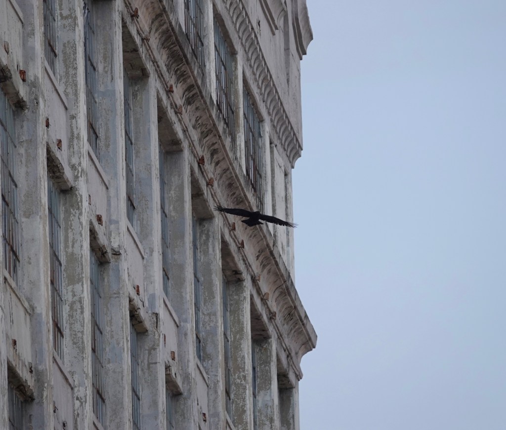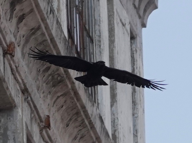 Eight years ago, I saw my first Brooklyn Ravens at this very spot. They were grooming and cavorting on this building. Last Friday, this one flew towards me down what must surely be called Raven Street by now.