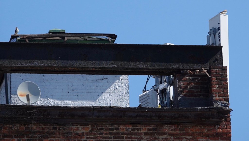The nest site. American Kestrels are unusual amongst raptors in that they nest in cavities. There aren’t a lot of dead trees in the city, but there are a lot of rotting cornices.