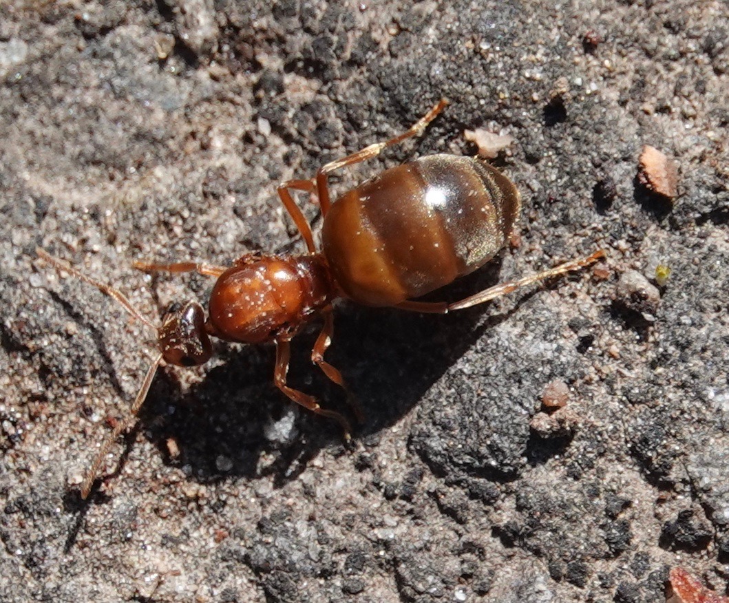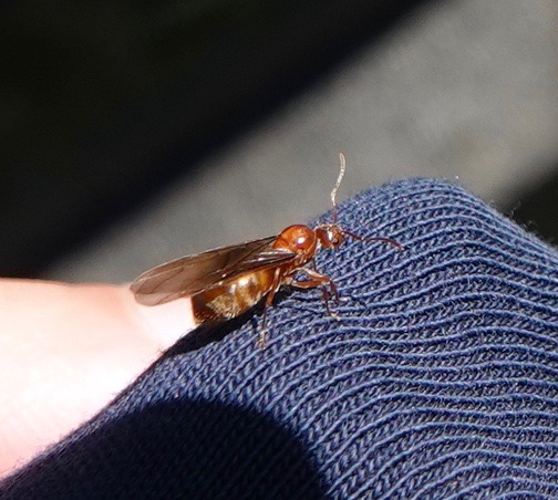 Reproductive ants were a-wing, too. American Winter Ant gyne (presumptive queen), much larger than the males: