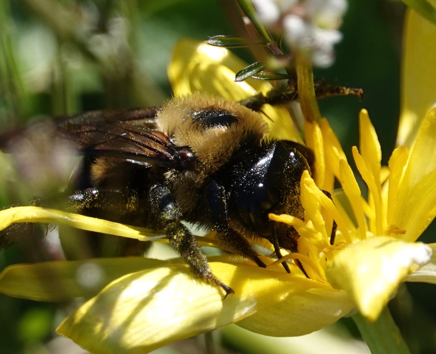 Saw my first Eastern Carpenter Bees of the season: this one on Lesser Celandine and another on Japanese Andromeda.