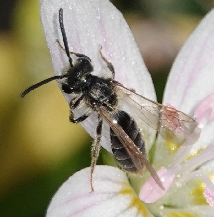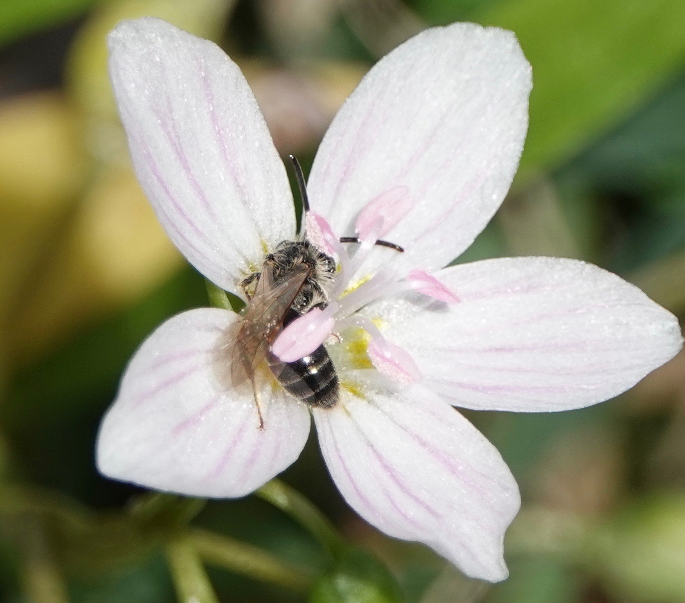 An Andrena genus mining bee… is it the fabled Spring Beauty Miner? Stay tuned.