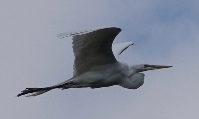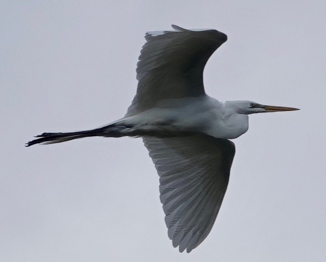 A low-flying Great Egret about to go over 5th Avenue, presumably on the way to Sylvan Water.