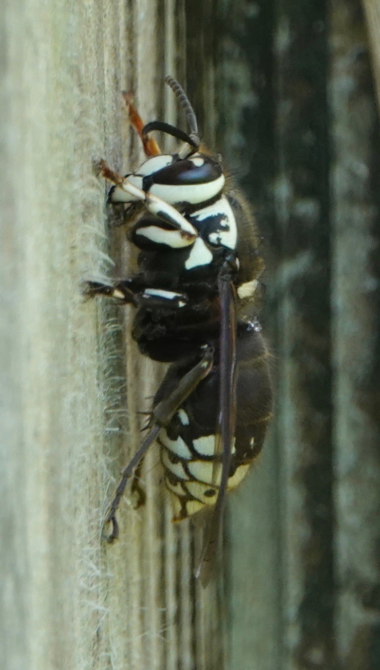 Above is the first Bald-faced Hornet I’ve seen this year. She was scraping wood fiber off… one of those bee/wasp hotels of all things.