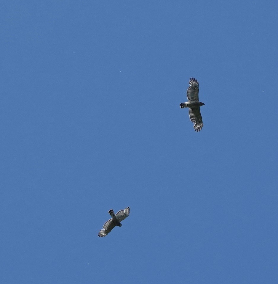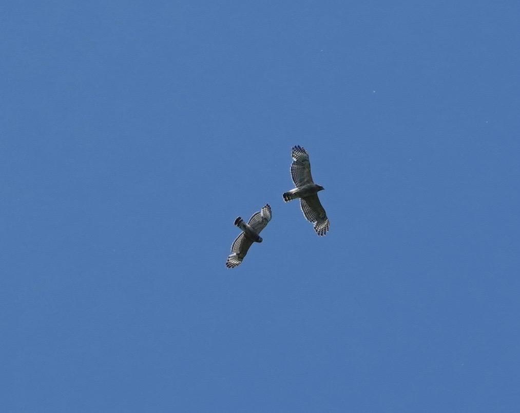 Two Red-shouldered Hawks soaring over Staatsburg.
