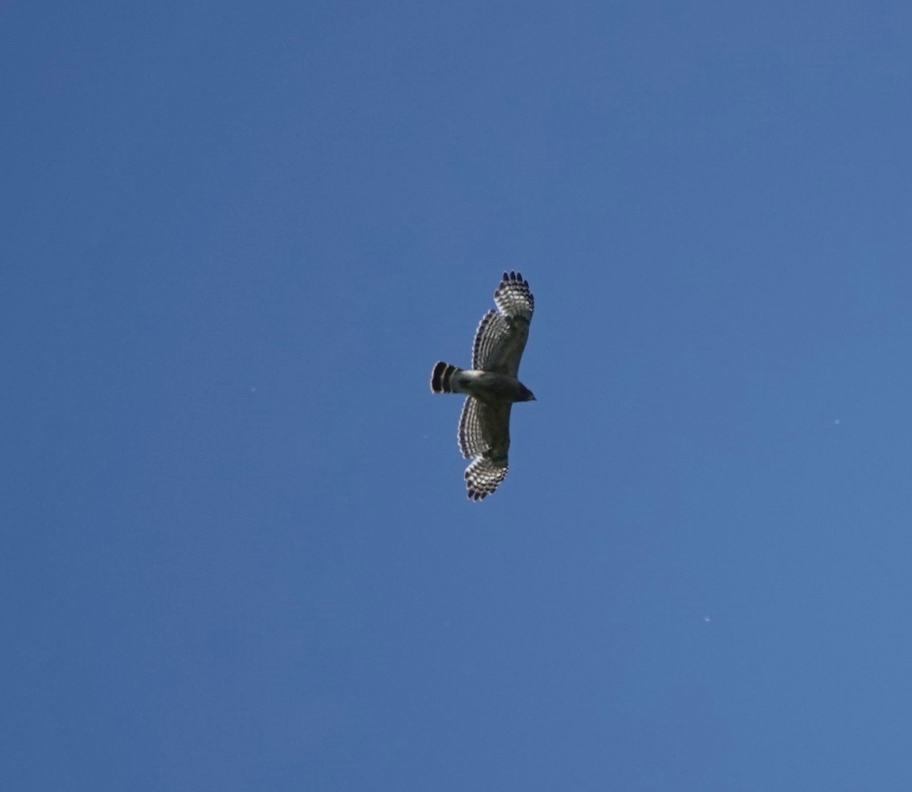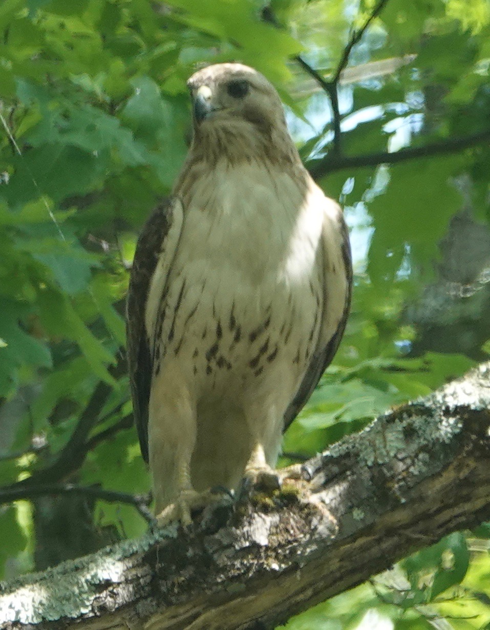 A Red-tailed Hawk in the woods out back. Picture through the screened window…