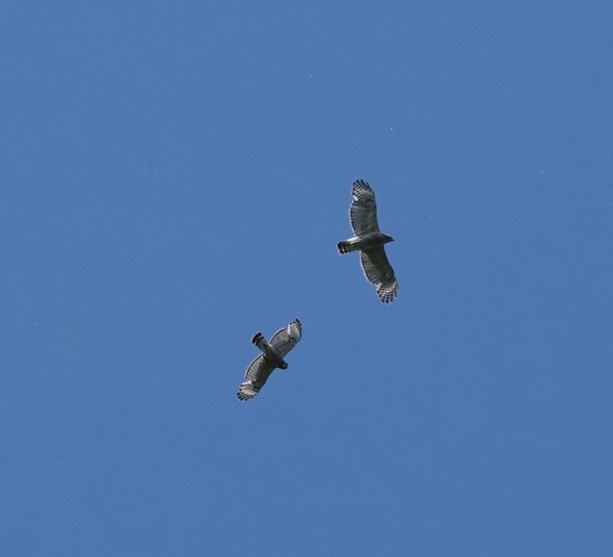 Two Red-shouldered Hawks soaring over Staatsburg.