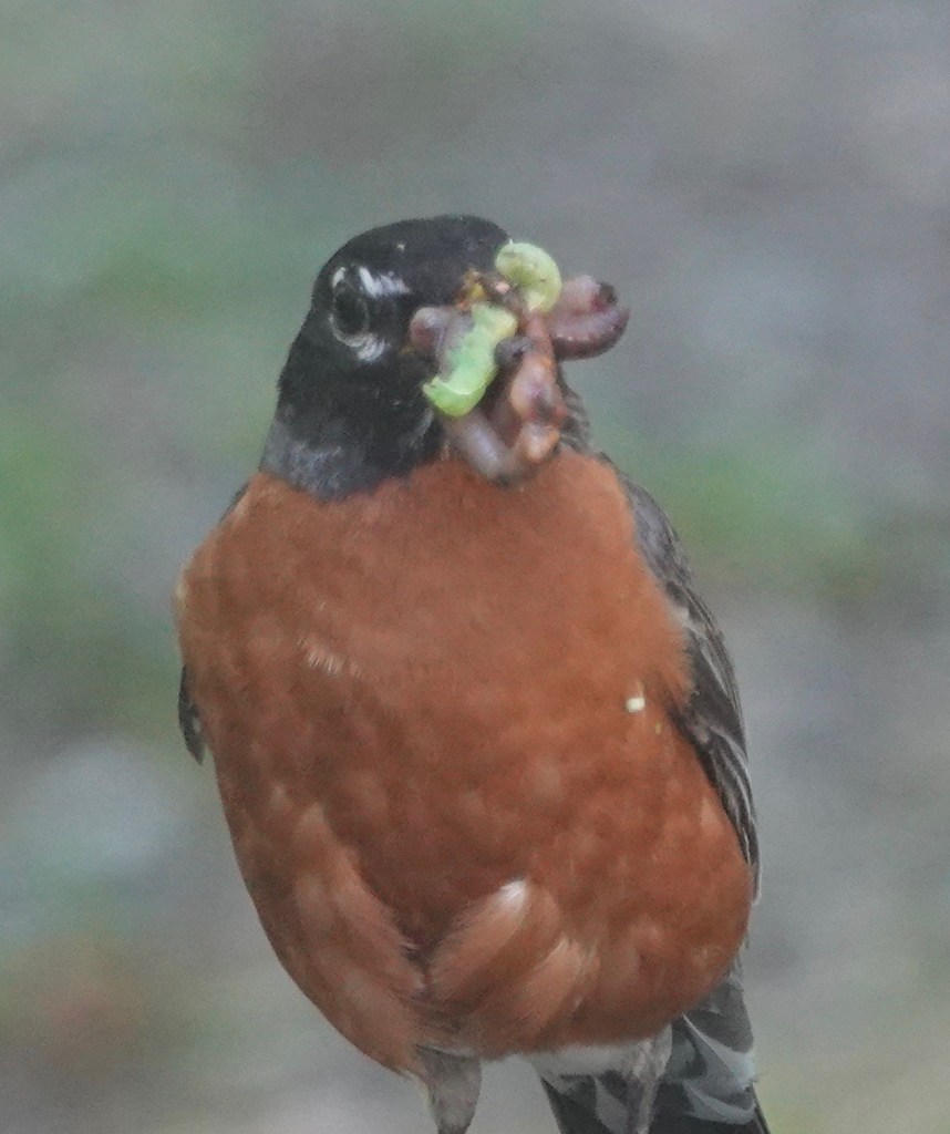 The local Robins’ nestlings were been fed well (here with some earthworms).