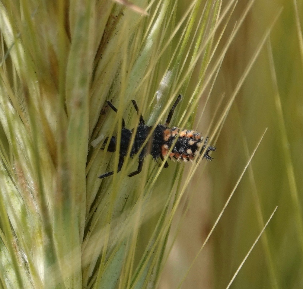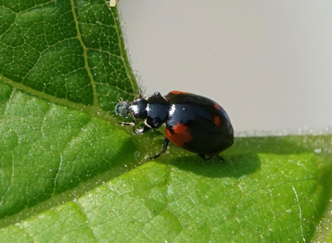 Since you’re here, two more variations on the Two-spotted (above and below). Confusing at first since they look so different. These were not found on the barley, but nearby on some big Princess Tree leaves.