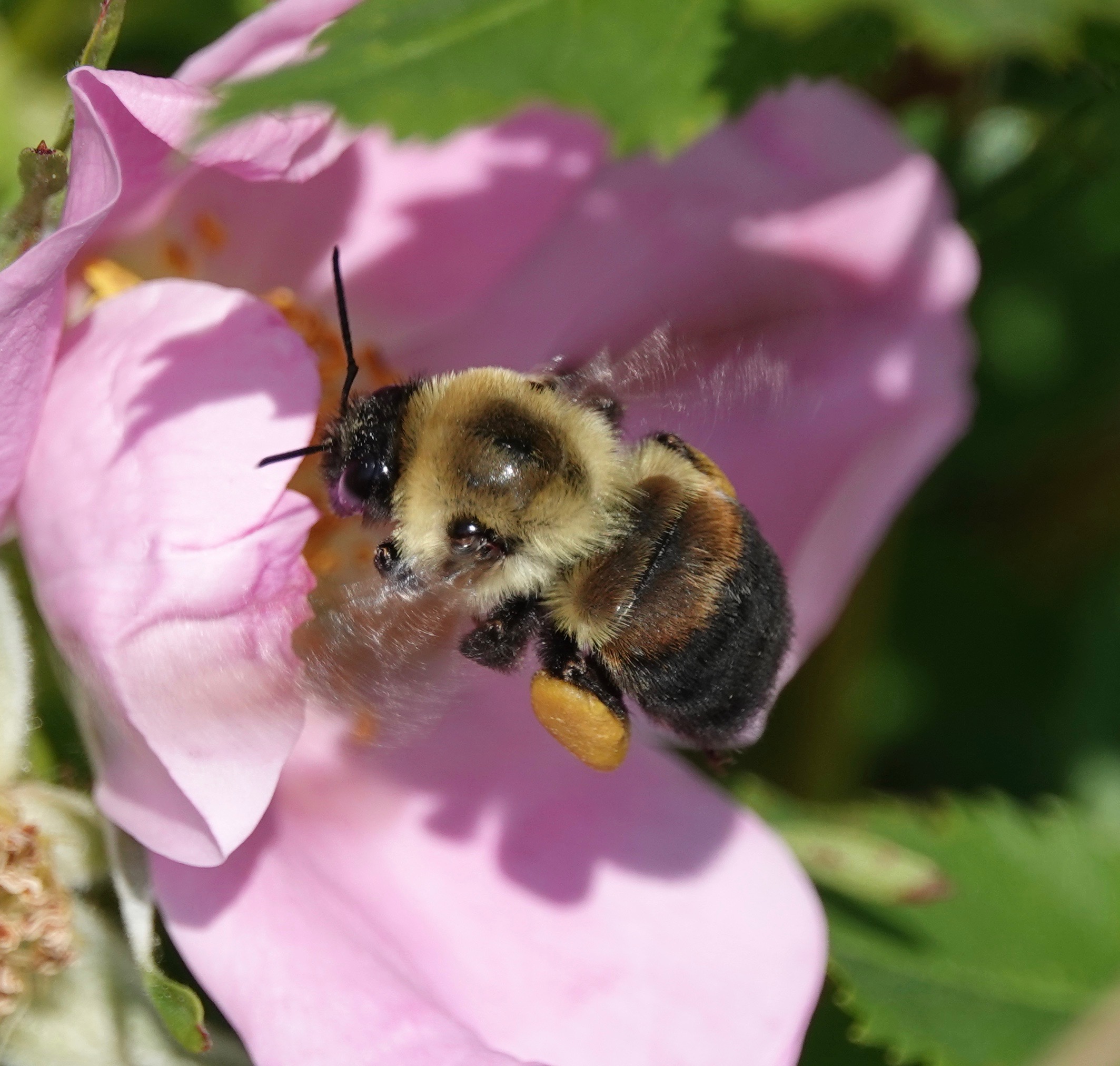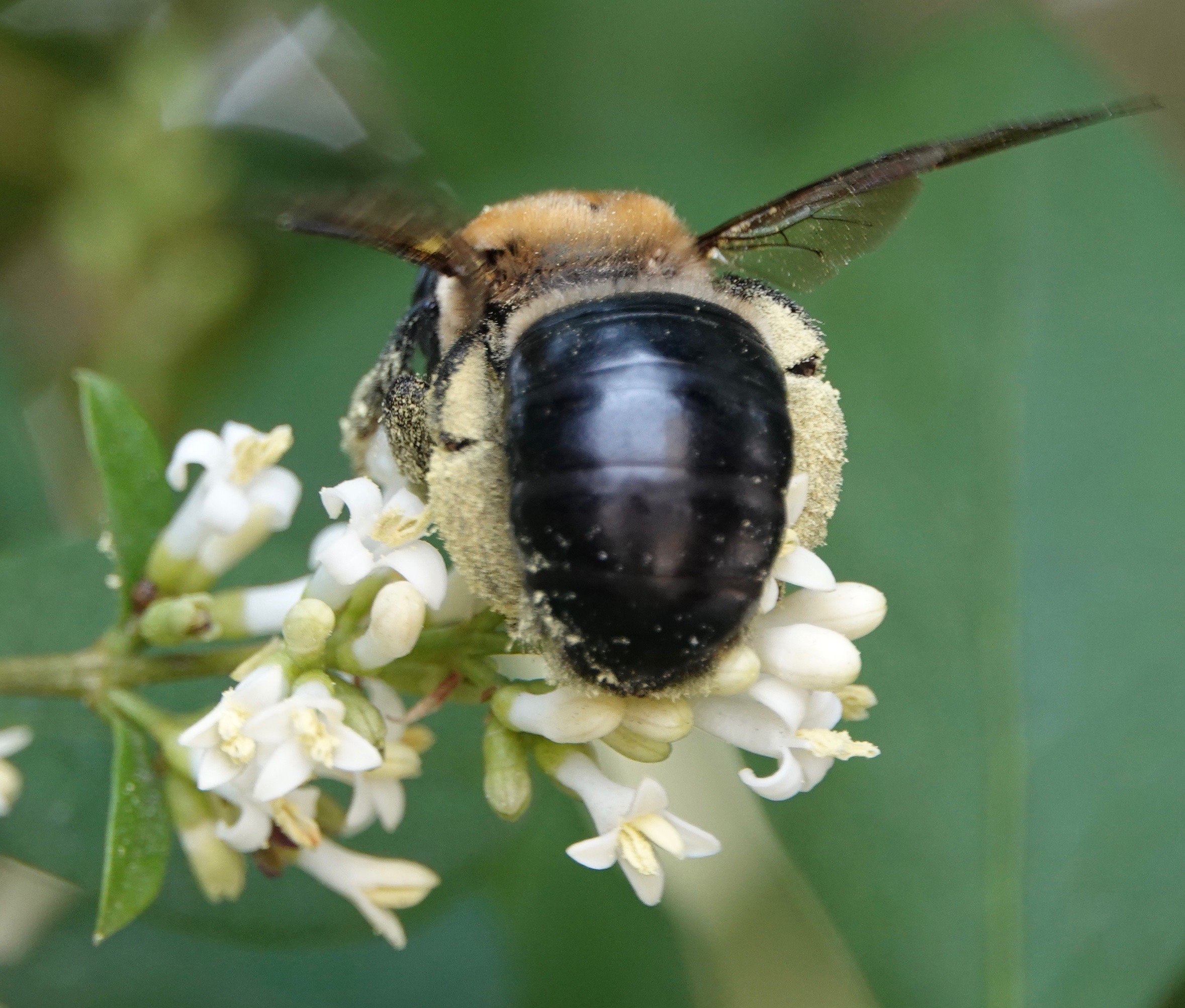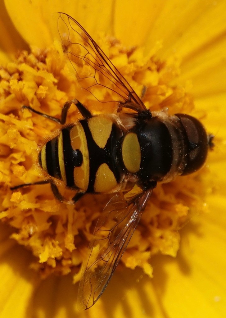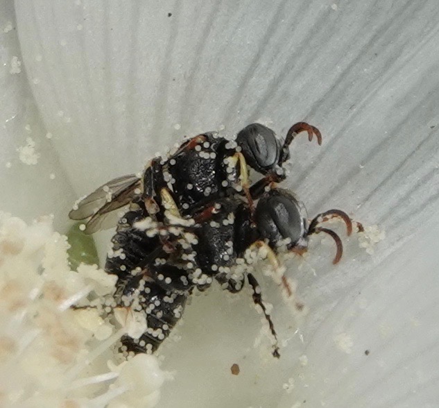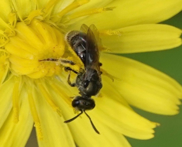 These mating… Oxybelus wasps, I think… are simply covered in pollen, but will they land in other flowers to spread it around?